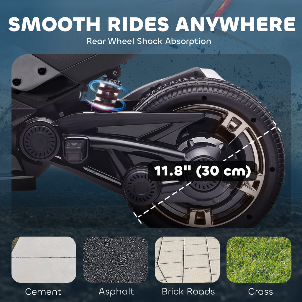 Adventures start with the AIYAPLAY kids electric ride on ATV – a cool reverse trike design that makes kids feel like real explorers. Two 12V motors and suspension keep rides smooth at 3–5km/h. Built-in USB lets them play their favourite songs, while front and rear LED lights light the way for added fun and realism. It's a ride made for excitement, confidence and imagination.