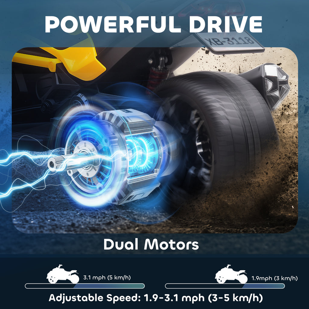 Adventures start with the AIYAPLAY kids electric ride on ATV – a cool reverse trike design that makes kids feel like real explorers. Two 12V motors and suspension keep rides smooth at 3–5km/h. Built-in USB lets them play their favourite songs, while front and rear LED lights light the way for added fun and realism. It's a ride made for excitement, confidence and imagination.
