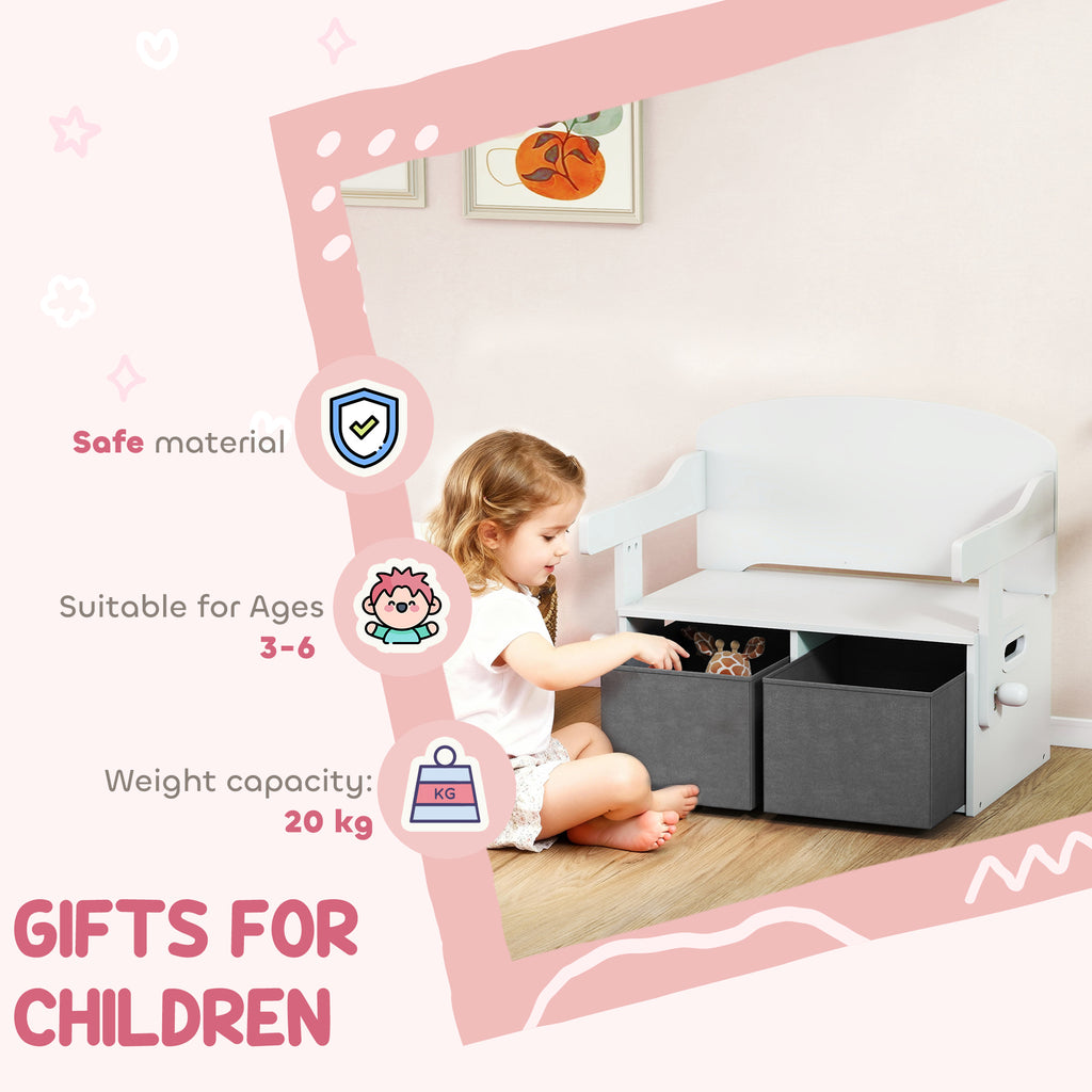 Is playroom clutter a constant battle? The mess of toys and lack of a dedicated activity space can be frustrating. This AIYAPLAY kids storage bench can easily transform into a table and chair set, offering a versatile spot for creativity. With two storage bins to tidy up and a stable, rounded-corner design for safety, it brings both peace of mind and organised fun to their room.