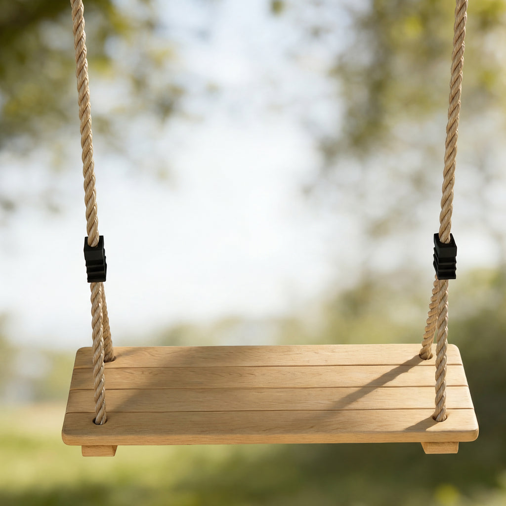 Swing set brings back the simple joy of outdoor play, but finding a product that's easy to set up and adapts as your child grows can be a hassle. Watch their face light up with the AIYAPLAY toddler swing. Its classic wooden design and adjustable ropes offer timeless fun. Easily hang this kids swing from a tree or beam using the included straps, creating cherished memories in your own garden for years to come