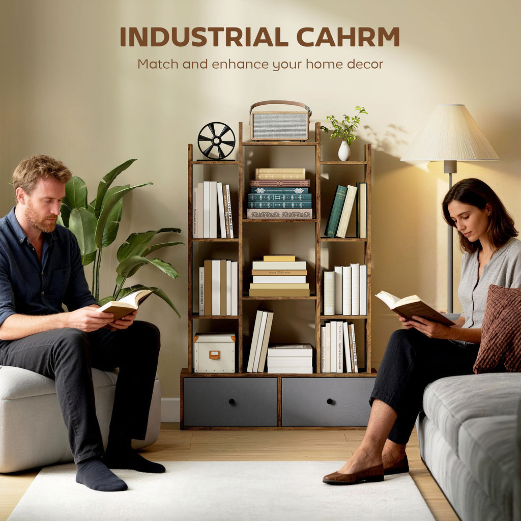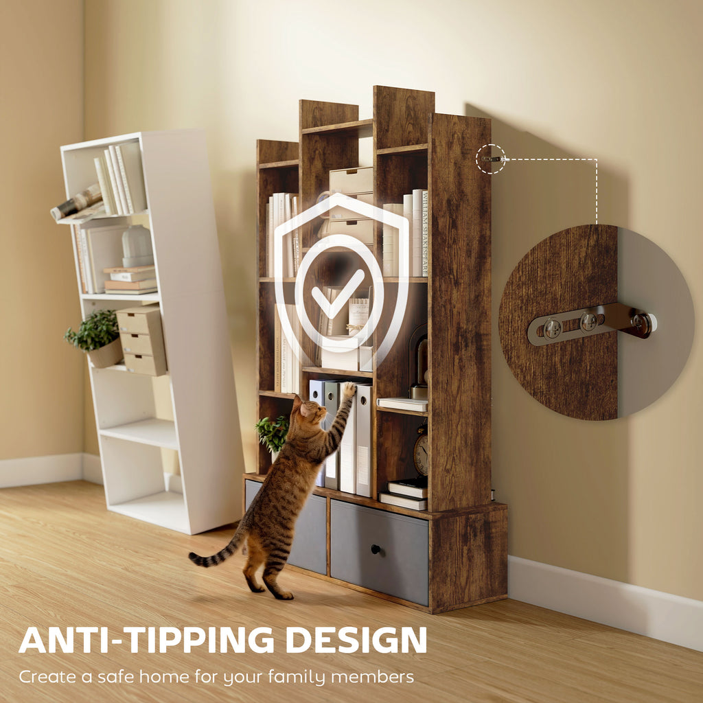 The place to keep all books, ornaments and more, with this HOMCOM tree bookcase. Its 12 cubbies and two drawers provide plenty of organisation and holding room, while a wide base and anti-tip kit prevent unwanted tipping, ensuring family safety. You can create a tidy, personalised display, transforming your living space into a sanctuary of calm and joyful organisation with our bookshelf.