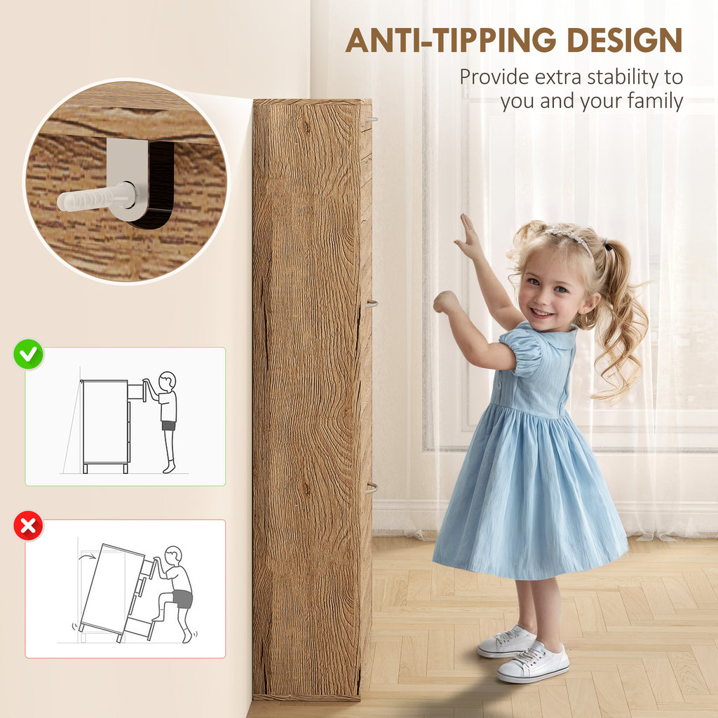 Made for the narrow spots, this HOMCOM slim shoe storage unit is here to keep the home clutter-free from shoes. Three flip drawers hold up to 12 shoe pairs - great for the household - or the individual shoe lover! Made from particle board, this shoe storage unit is solid and suitable for the everyday, with the paneled-door design giving it a modern look. Comes with anti-tipping straps to anchor to a wall safety.