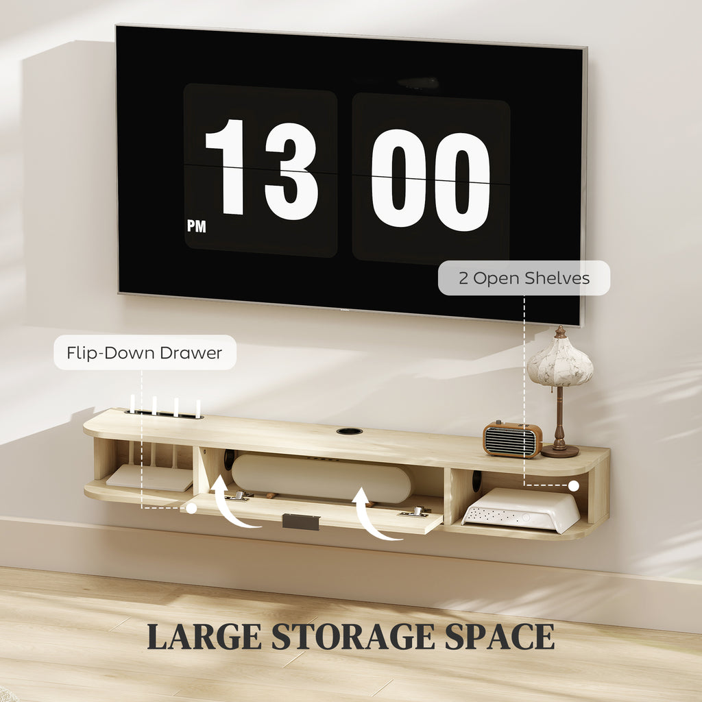 Tired of a cramped living room with tangled wires and clutter? That visual chaos can make it hard to relax and enjoy your space. The HOMCOM floating TV unit transforms your entertainment area. It lifts your setup off the ground, creating an open feel while neatly concealing cables. A discreet drawer hides controllers and open shelves keep devices ready, bringing a sense of calm and order to your home.