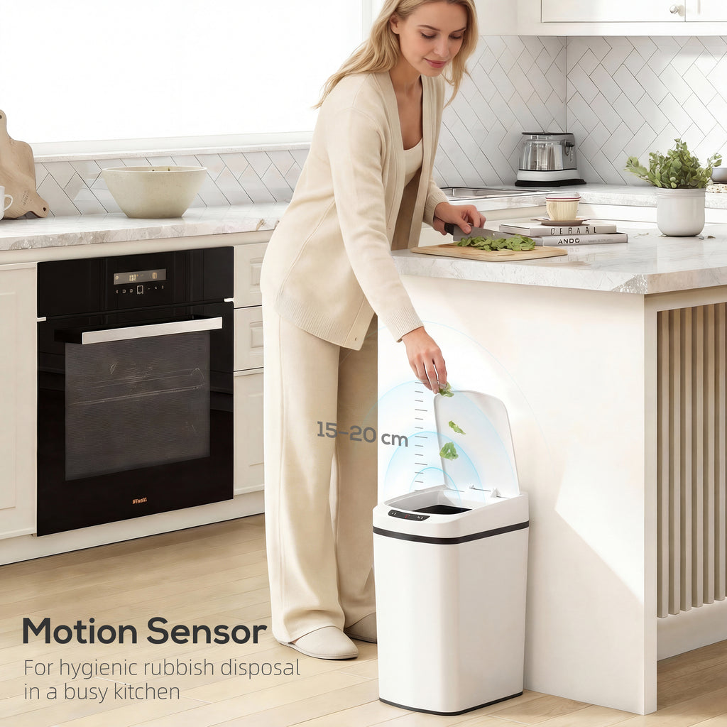 Make kitchen clean-ups effortless with the HOMCOM sensor bin. The dual-mode smart opening offers hands-free convenience with infrared sensing, while a manual touch button gives you full control. Its compact design and 12L capacity fit seamlessly into modern spaces, making it family-friendly and efficient. With a removable inner bucket and bag-retainer ring, this bin ensures mess-free emptying and a clutter-free look every day!