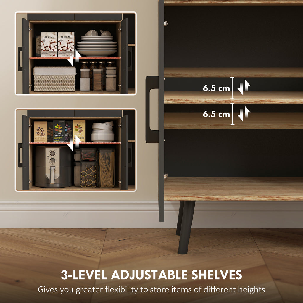 Transform your kitchen into a vibrant hub with the HOMCOM kitchen storage cabinet. Imagine hosting a dinner party where the smart RGB LED strip sets the optimal mood with over 60,000 colours and 29 dynamic flash modes. The modern oak and black design of this kitchen pantry adds elegance, while its flexible storage solutions keep your space organised and stress-free. Enjoy a stylish, functional kitchen that enhances your lifestyle.