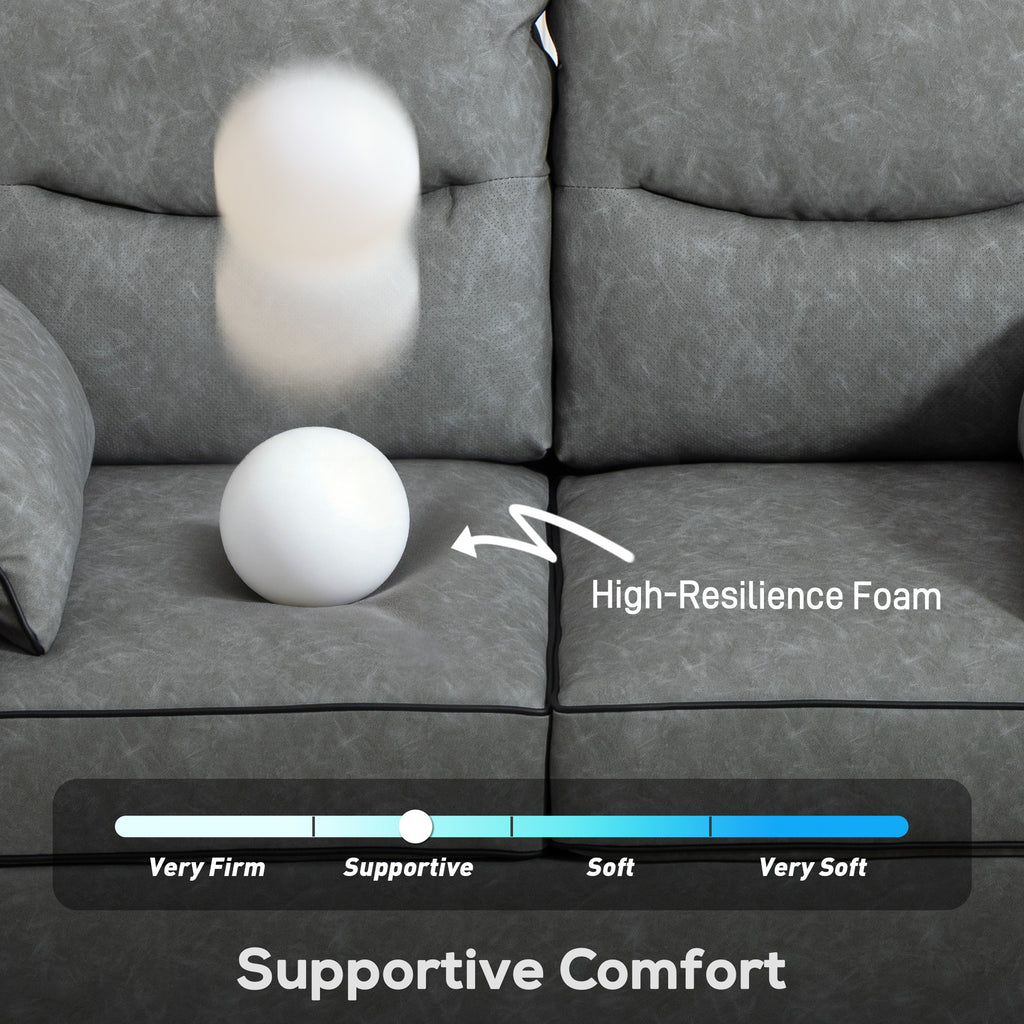 Make it minimal with your home seating - this HOMCOM two-seater sofa. In grey, with black piping, this faux leather piece is a simple design, so it will look great in plenty of different home styles. Filled with thick foam padding, with 'S' springs and elastic bands, this is a comfortable piece - you'll love using this living room sofa day in, day out.