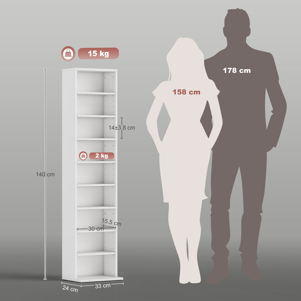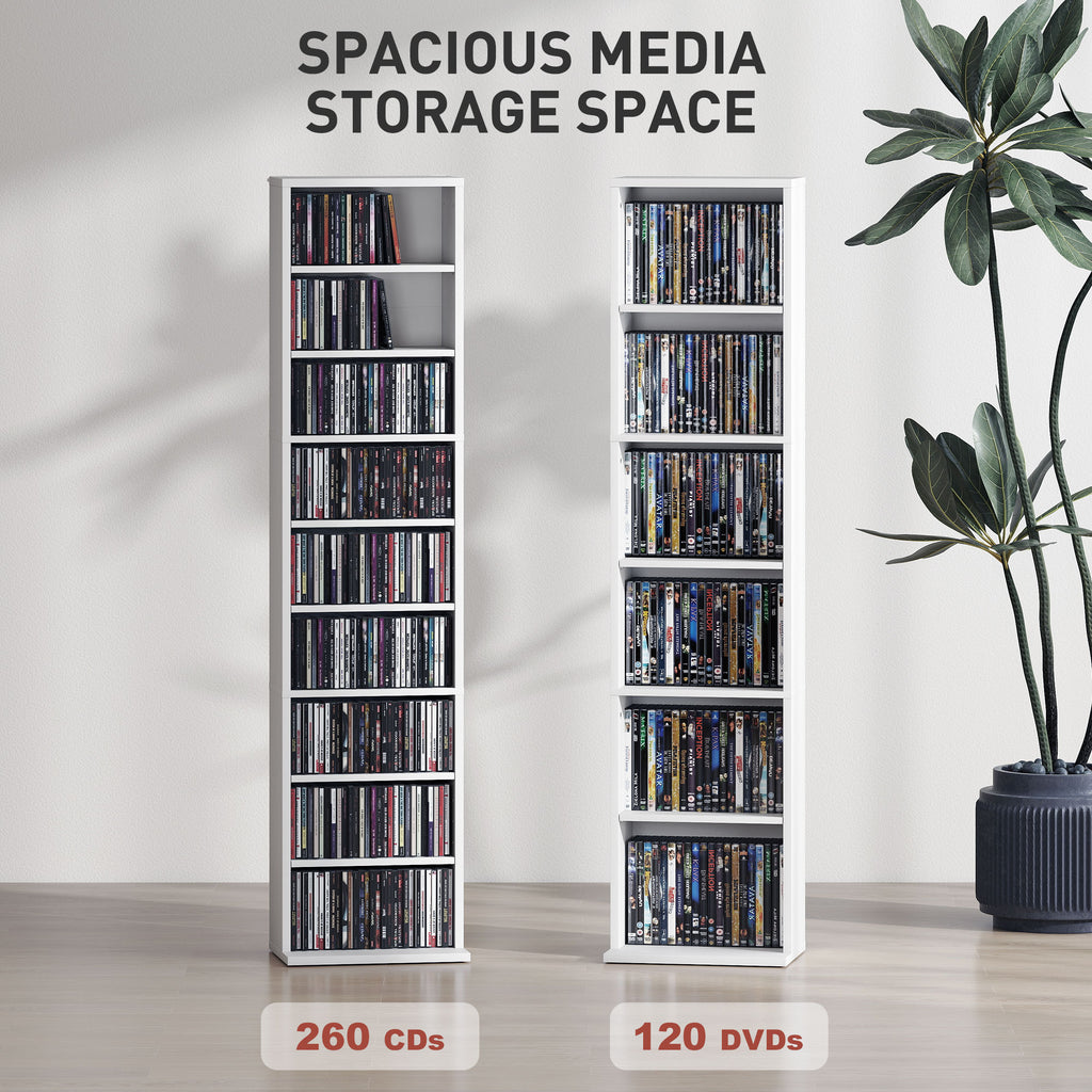 An easy and simple solution for keeping media stored, in the home and beyond - this HOMCOM storage unit. It holds up to 260 CDs, or 120 DVDs, with six adjustable shelves for customisable storage. The CD shelf is made from tough particle board with a smooth melamine coating, complete with anti-tipping straps included to secure to a wall.