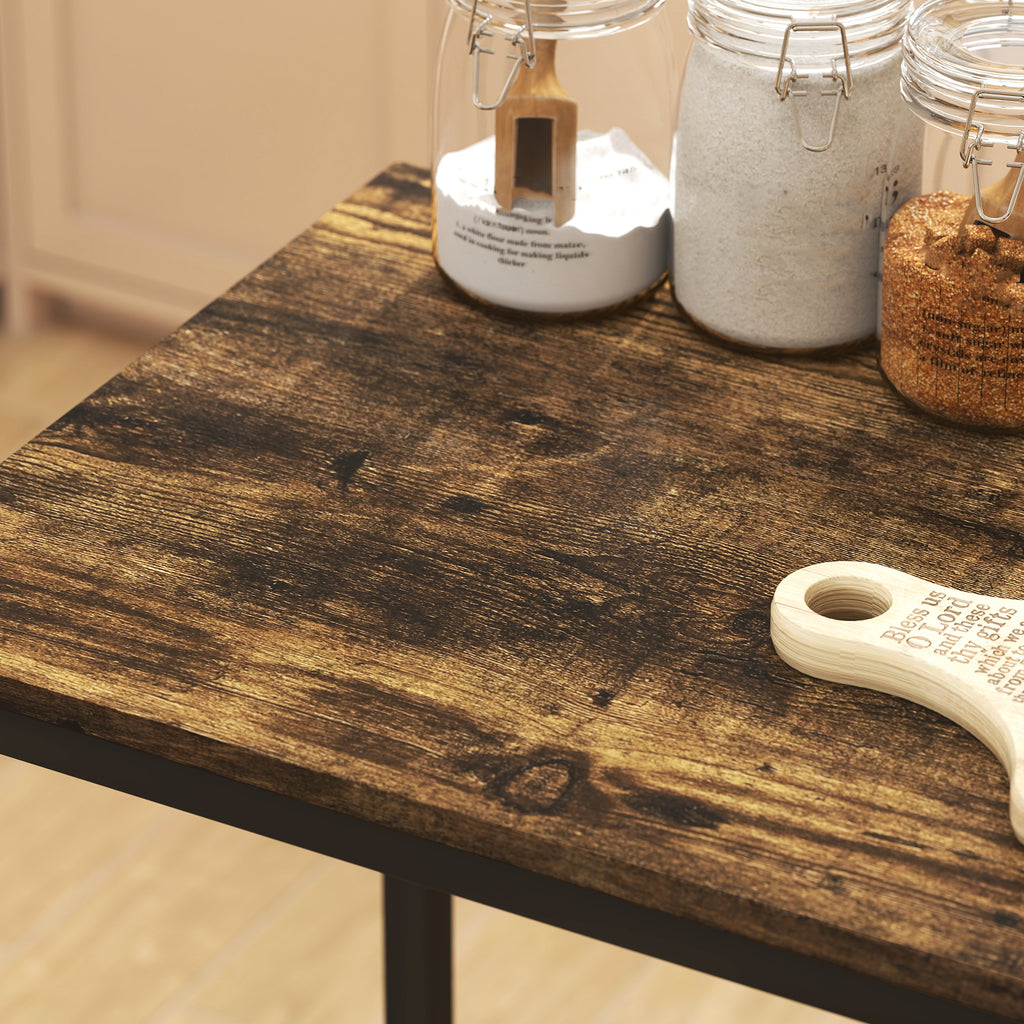 Discover the chic charm of HOMCOM's industrial bar table set, featuring a sleek rectangular table with two stools. Its rustic brown and black metal design adds a trendy touch to any space. Enjoy the comfort of supportive backrests and integrated footrests, great for daily dining or casual drinks. Plus, the space-saving design fits beautifully in small spaces, keeping your area neat and stylish.