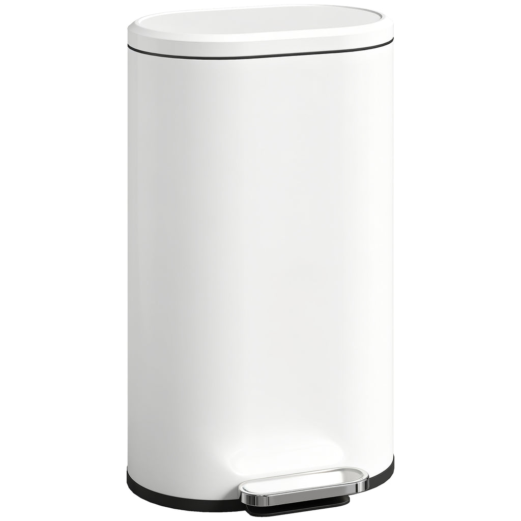 This HOMCOM 30L pedal bin is an essential for every clean and tidy kitchen. It's fitted with a silent soft-close lid so it doesn't bang and distract you; also stays up to a 90° angle for easy filling and bin changing. Made from fingerprint-resistant metal, made into a modern curved shape - a sleek addition to every home.