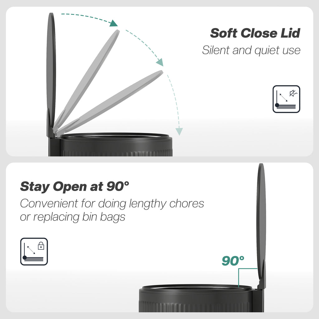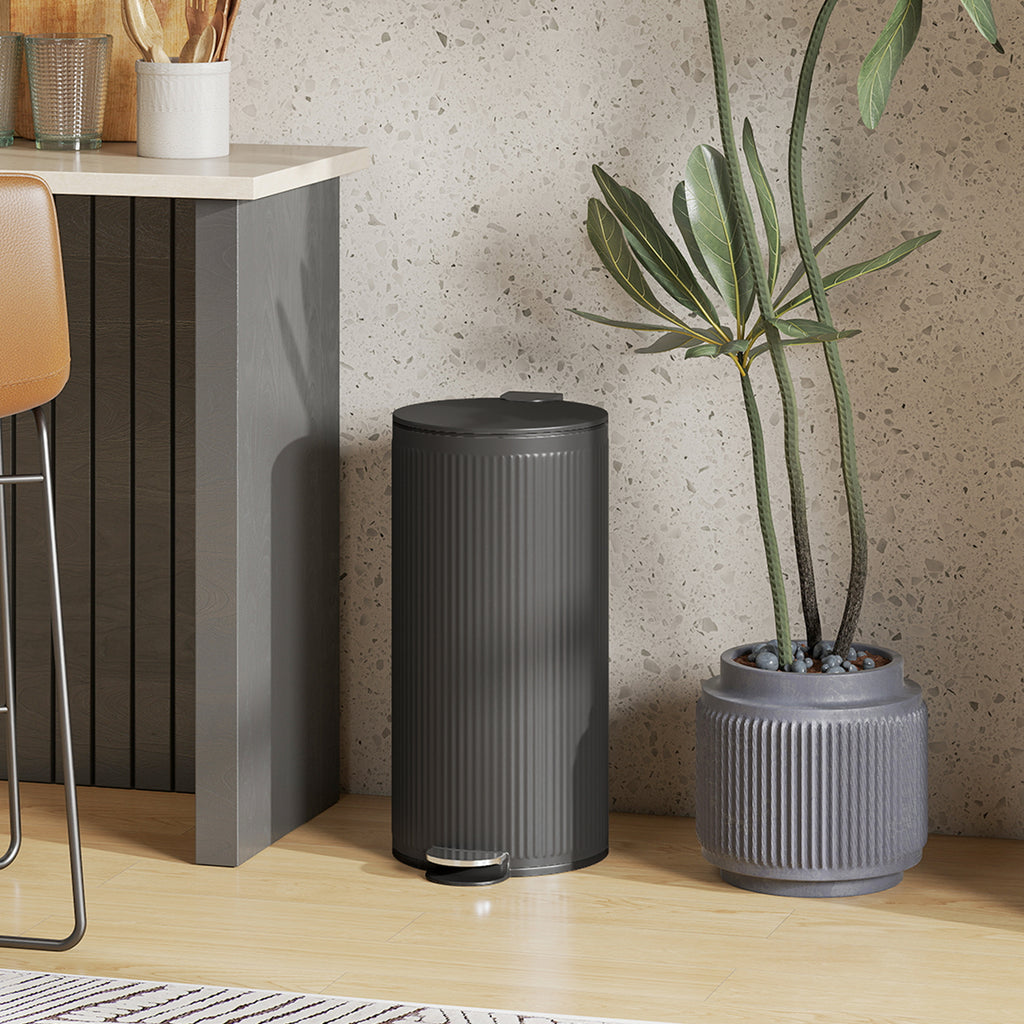 Struggling with a noisy, overflowing kitchen pedal bin that disrupts your home's calm and clashes with your decor? The constant bag changes and jarring lid slams can spoil a peaceful morning. The HOMCOM trash bin offers a solution. Its ribbed texture design fits any room, while the silent, soft-close lid preserves tranquility. The 30L liner means fewer trips to take out the trash, simplifying your daily routine and enhancing your living space.