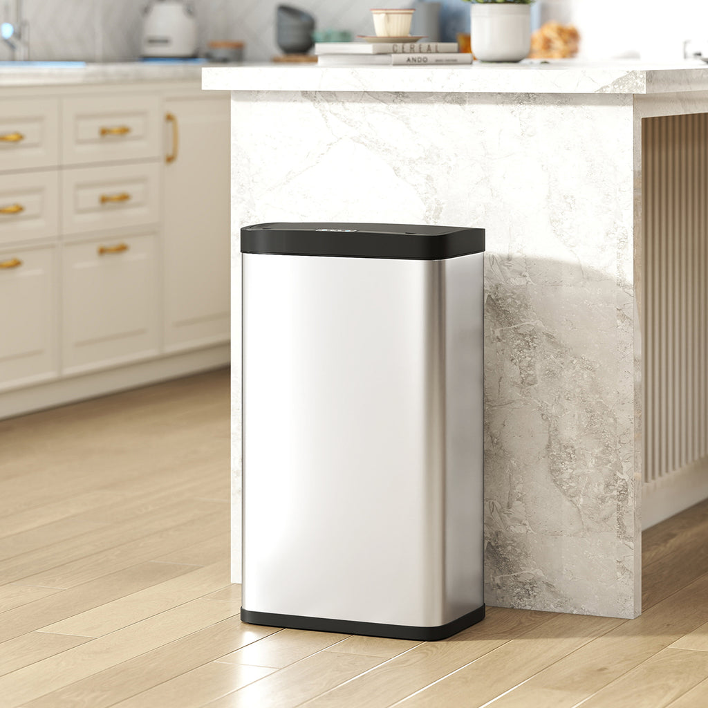 Tired of juggling messy waste with full hands and the startling slam of a lid? This HOMCOM sensor bin makes cleanup effortless. The top hand-wave sensor detects motion within 15 cm for instant, touch-free opening, while the lid closes softly and silently. A removable inner bucket allows easy cleaning, and the brushed stainless steel finish resists smudges for a sleek, hygienic look that fits perfectly in any kitchen or office.