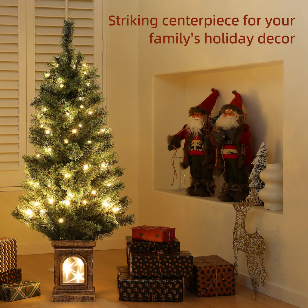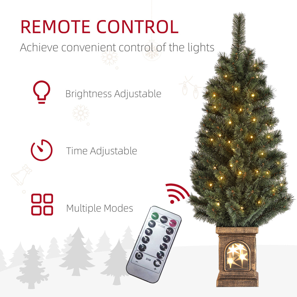 Light your Christmas night the easy way, thanks to this HOMCOM Christmas tree with lights and realistic plastic blooming pine needles. Thanks to the already included LED lights, there's a less worry to think about when dressing this piece; the RGB string comes with 8 pre-set modes, brightness adjustment function, a timer and a remote control. Flame retardant plastic makes this pre-lit small Xmas tree safe, with a square base included so it stands steady in place.