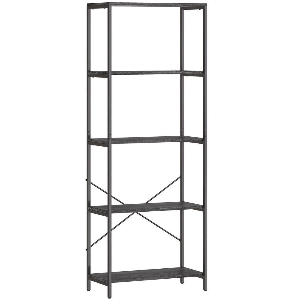 Striking storage, for an organised home, with this HOMCOM bookshelf. With five shelves there's plenty of room for holding books, decorations photos and more - easy to organise too. The metal frame means a strong core, fitted with a back 'X' bar for extra support. In a black and wood-effect design, this is an industrial-style design which brings added character into your home.