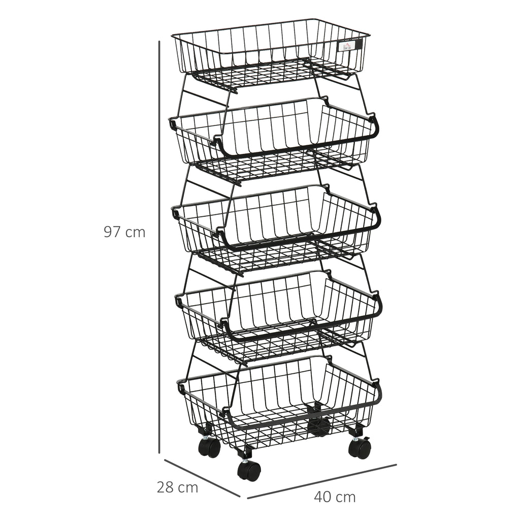 - 5 tiers baskets provide versatile storage space in the kitchen, living room, bedroom and more