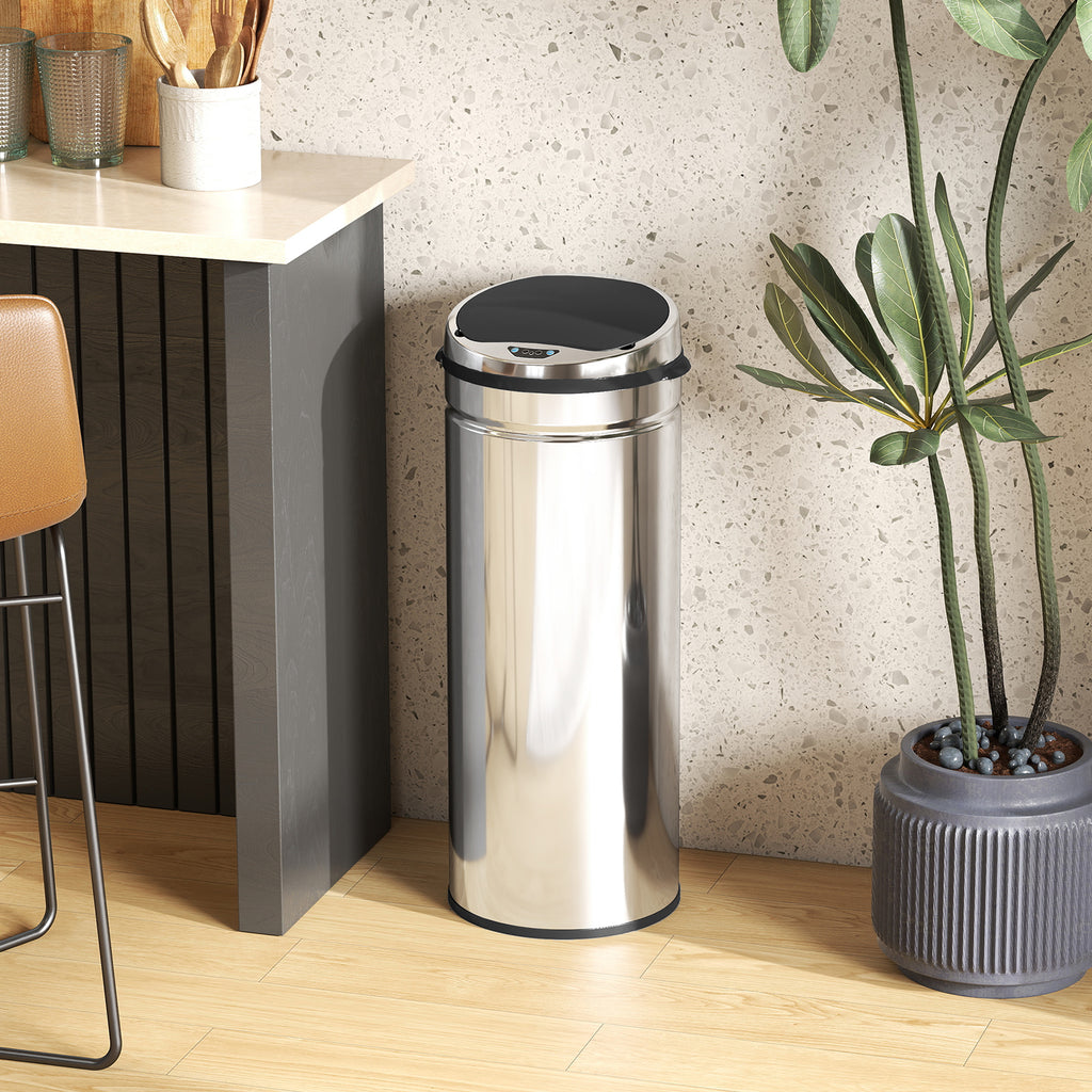 Tired of juggling messy waste with full hands and the startling slam of a lid? This HOMCOM sensor bin makes cleanup effortless. The top hand-wave sensor detects motion within 15 cm for instant, touch-free opening, while the lid closes softly and silently. The brushed stainless steel finish resists smudges for a sleek, hygienic look that fits perfectly in any kitchen or office.