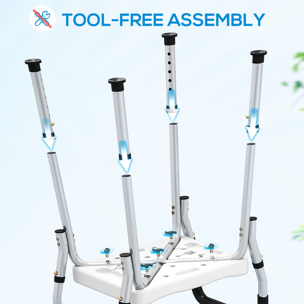 Sit safely in comfort with this HOMCOM adjustable shower seat. The height is adjustable between 57-69cm - set it to the position best for you. The aluminium frame is a strong core to support you fully. Complete with non-slip feet for safety.