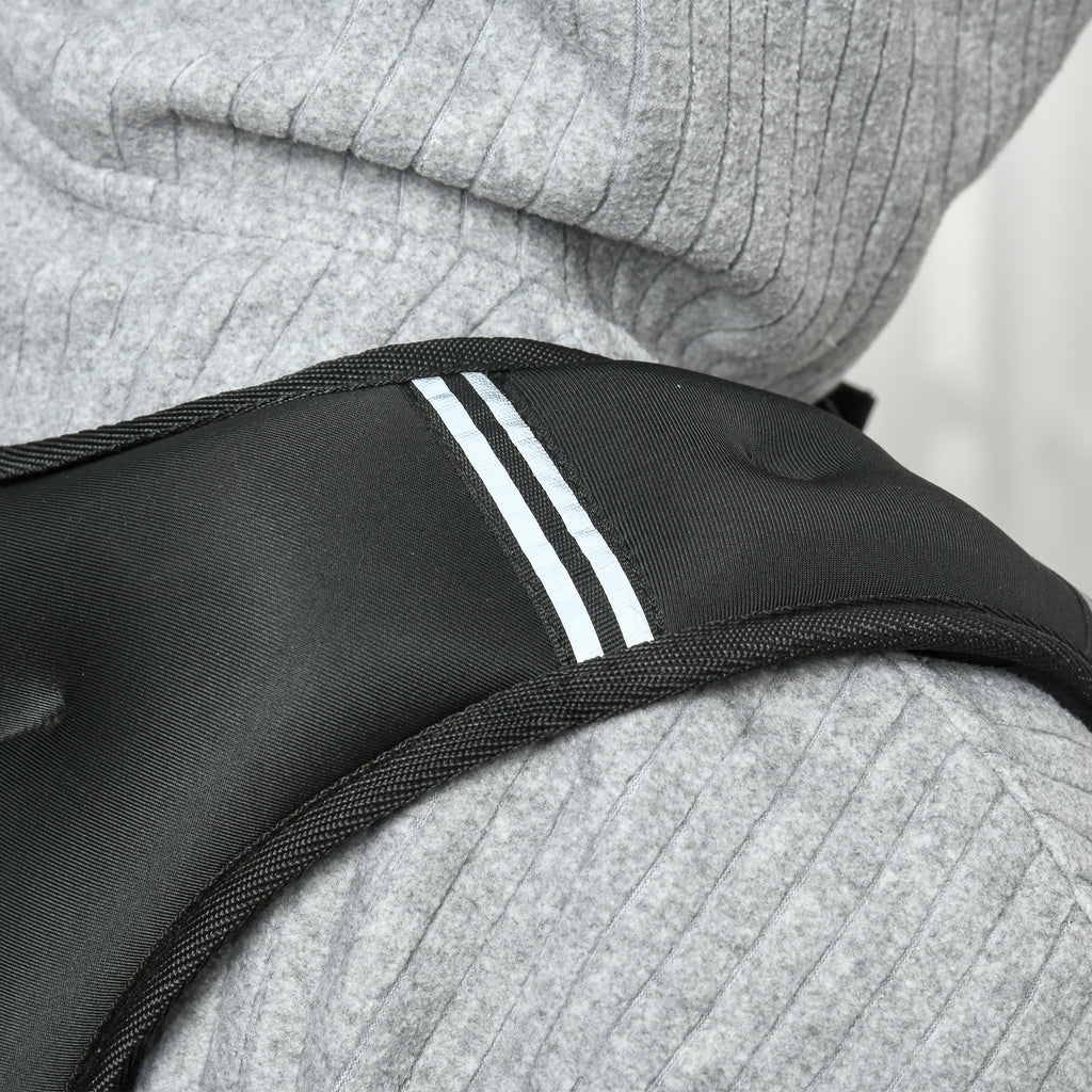 HOMCOM's running weight vest, crafted from oxford fabric and filled with metal sand, ensures an enhanced workout experience whether at home, office, or gym. Its broad, thick shoulder straps offer enhanced comfort. Easily adjustable, these straps can be tightened during workouts to keep the weighted walking vest secure. A handy mesh pocket at the back provides a safe spot for keys or a smartphone.