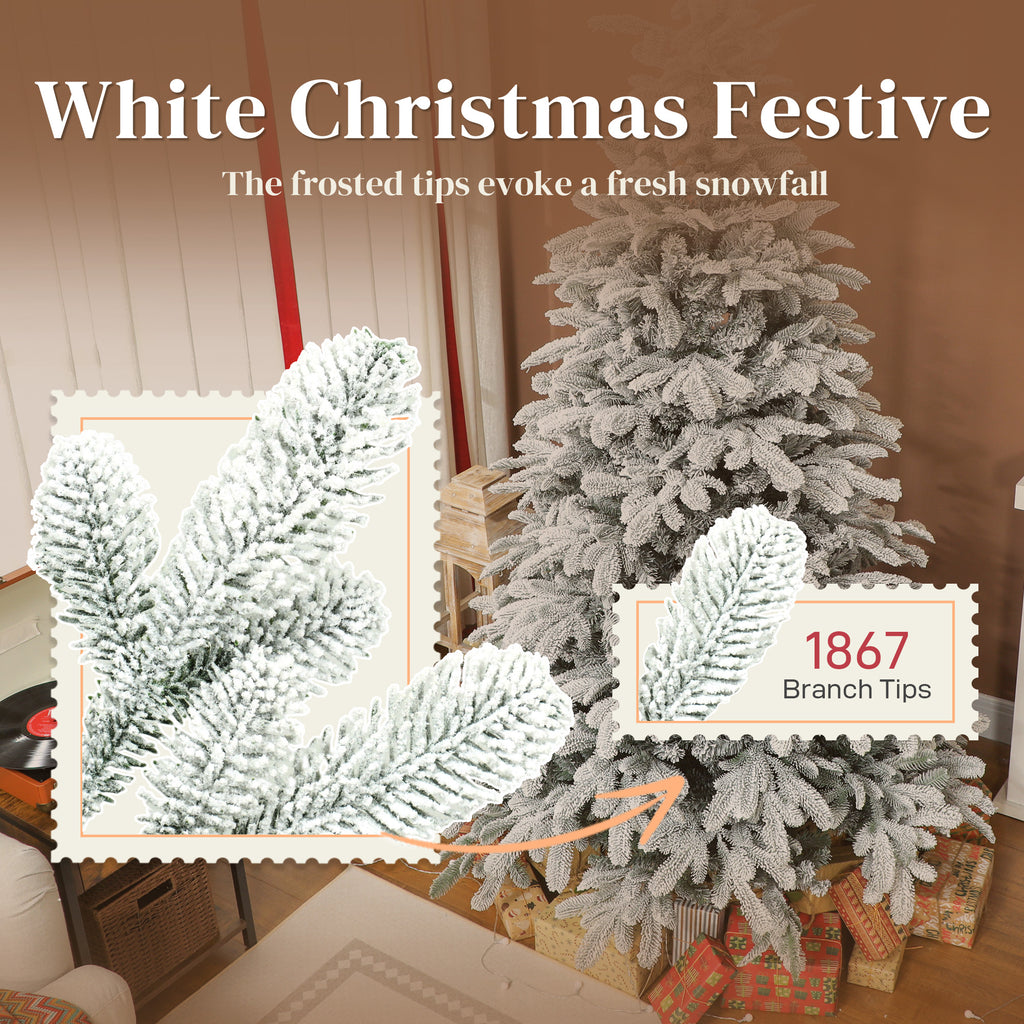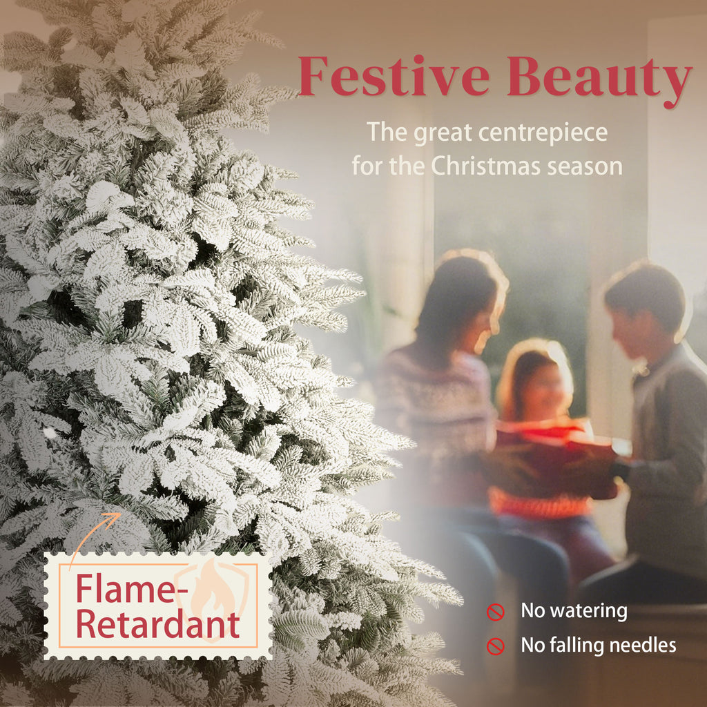 Step into a winter wonderland with the HOMCOM Christmas Tree, featuring 1867 snow-kissed branches for a truly magical festive feel. Most branches are carefully molded to replicate the natural, enchanting look of a real tree. Standing 210 cm tall, it transforms any room into a cosy festive retreat, safely crafted from flame-retardant materials and supported by a robust metal base.