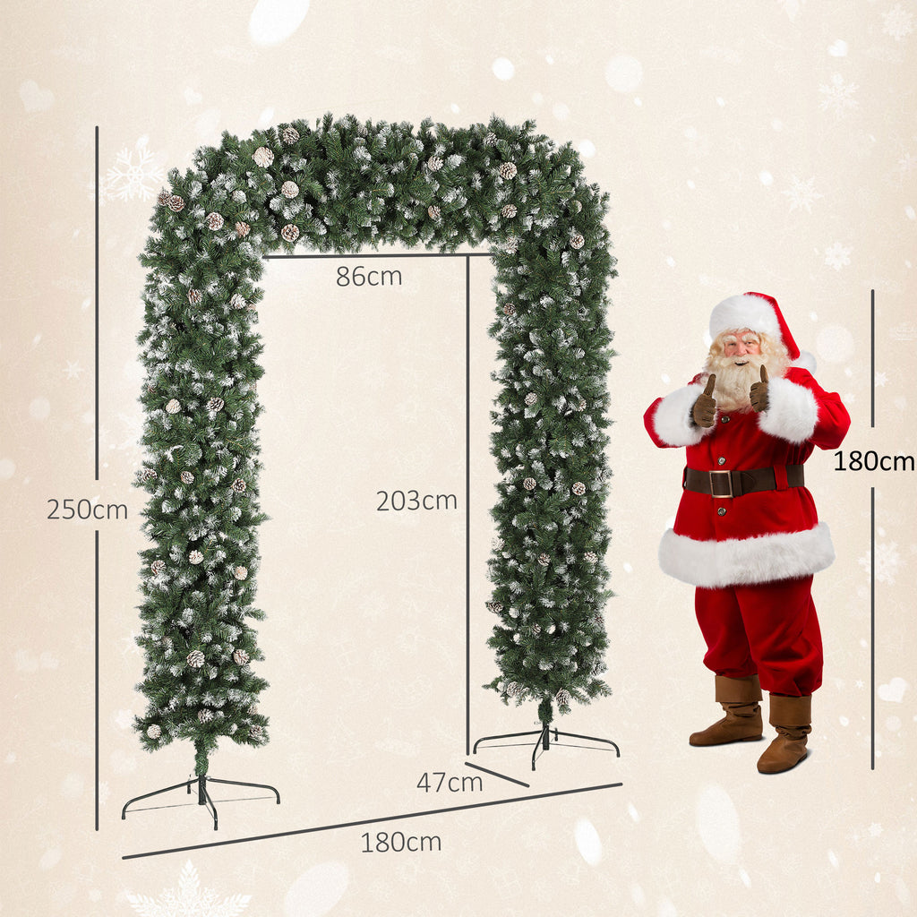 Step into the festive season with the HOMCOM Christmas Tree Arch. Its elegant arch design and 1800 tips with snow-dusted finish and 91 pinecones offer a lush, realistic gateway to Christmas cheer. Flame-retardant materials and a strong metal base ensure safety and stability, enhancing any indoor doorway with its charming presence.