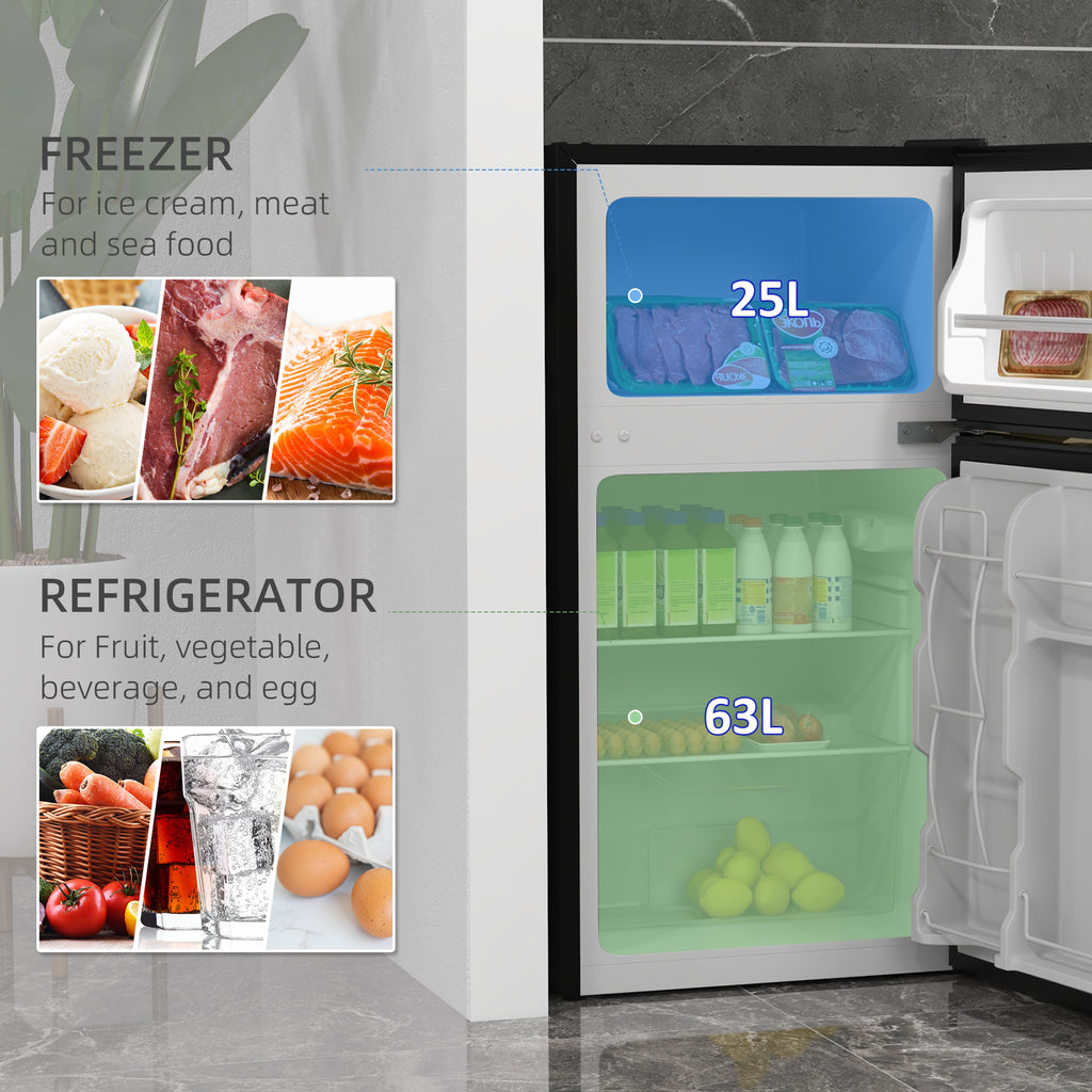 - Combined 88L capacity between fridge(63L) and freezer (25L)