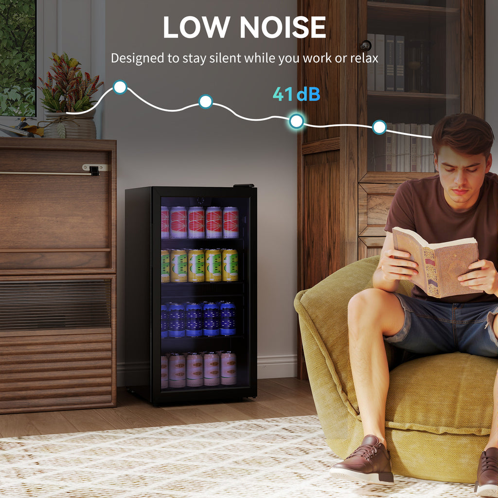 Keep your drinks perfectly chilled while adding style to your space with the HOMCOM drinks cooler. Whether you're hosting friends, enjoying a quiet night in, or having a party, it keeps every beverage at just the right temperature. With 93L of space and adjustable shelves, it holds up to 115 cans or bottles. The 7-step temperature knob chills from 2℃ to 14℃, and the sleek double-layer glass door with UV protection and LED lighting shows off your drinks in style.