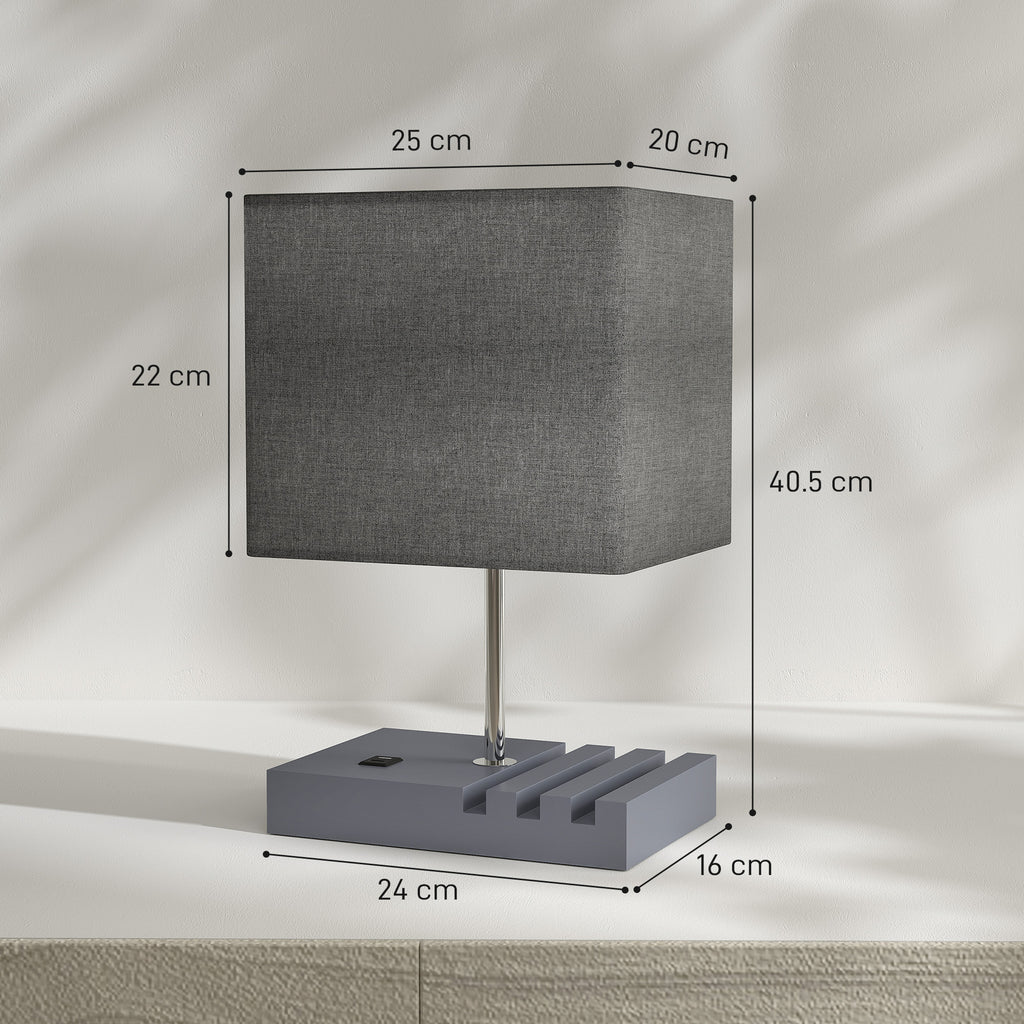 Tired of a cluttered nightstand and tangled charging cables disrupting your peace? This mess can make your personal sanctuary feel chaotic. The HOMCOM bedside lamp restores serenity. It integrates USB-A/C ports and three organiser slots, neatly powering and storing your devices. This modern table lamp combines a wood base and fabric shade, transforming your space into an organised, calming corner for convenience and peace of mind.