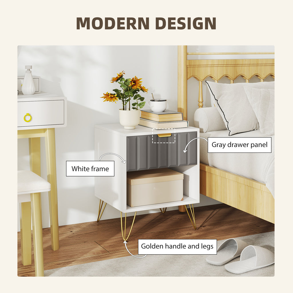 Keep your bedside storage simple and beautiful with this modern HOMCOM bedside table. Three-part storage, formed of the flat countertop, a shelf and drawer to keep what you need right next to you. Also suitable as a side table for the living room and office and more. Crafted from particle board and MDF with solid steel legs, it's built to last. The coated surface and 15-centimeter gap clearance make it easy to clean. Plus, the drawer comes with a convenient handle for smooth opening and closing.