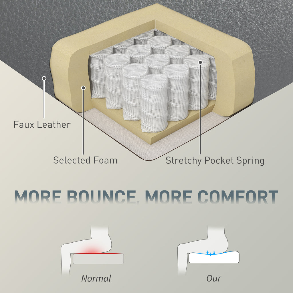 - Upholstered in PU leather for a stylish look and easy cleaning