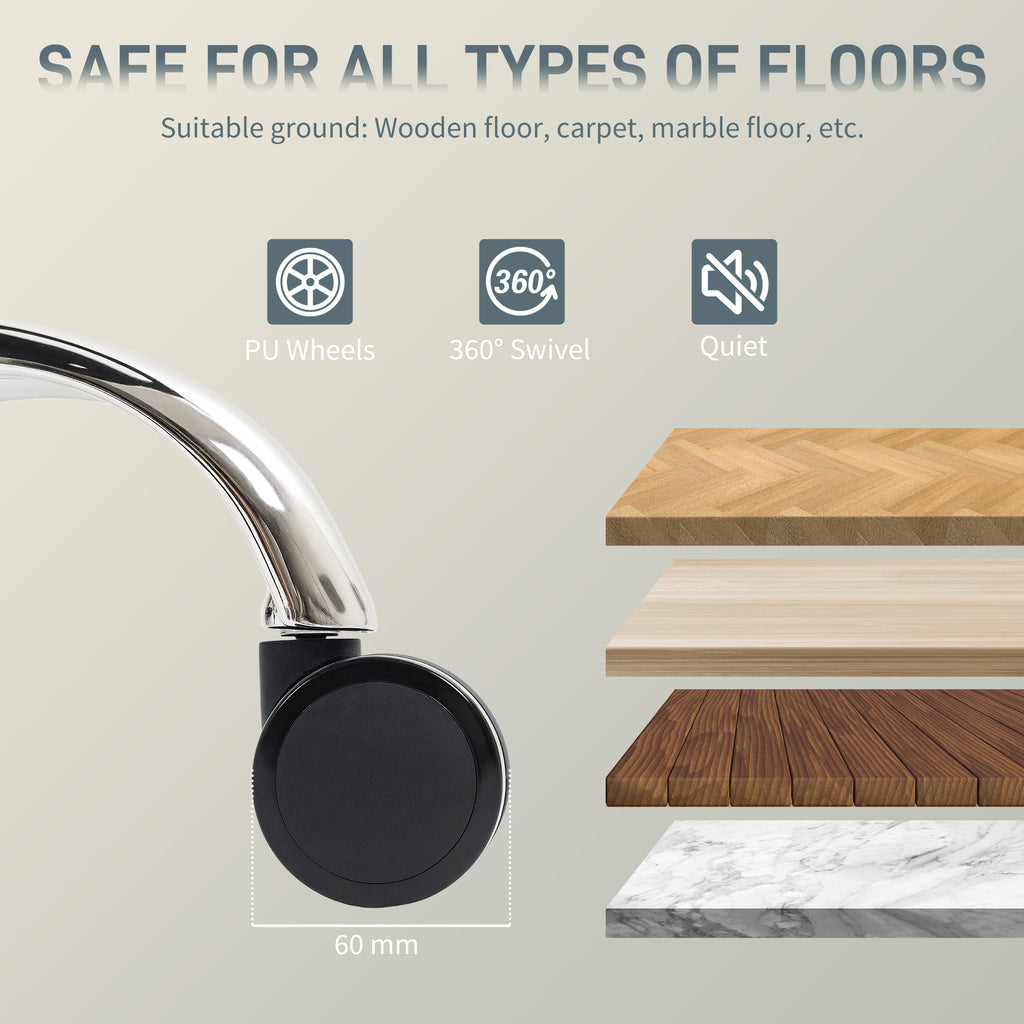 - Large smooth-rolling PU casters move quietly while protecting your floors from scratches
