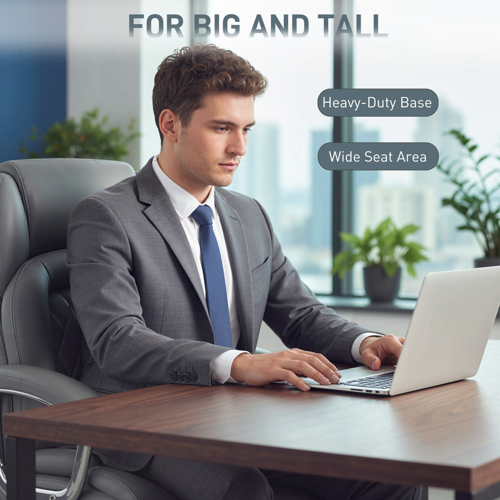 Long workdays in a cramped chair can leave you feeling drained and unsupported. The constant shifting and lack of proper back support make focusing a challenge. This HOMCOM big and tall office chair offers a solution. Its spacious, spring-cushioned seat and high back provide a secure, sofa-like embrace for your entire body. Settle in and experience a computer desk chair designed for enduring comfort and unwavering support through any task.