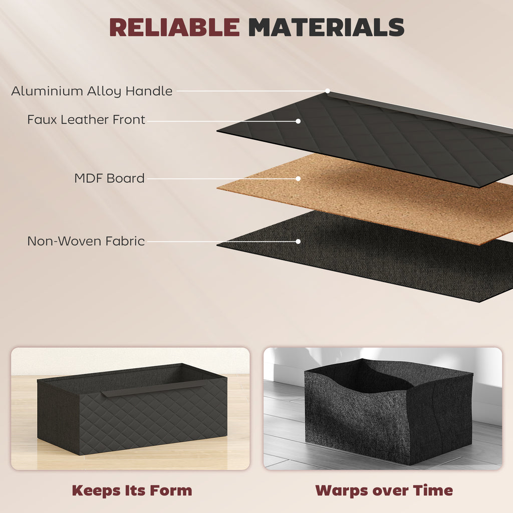 - Diamond-stitched faux leather fronts with wood-effect frame for stylish home decor