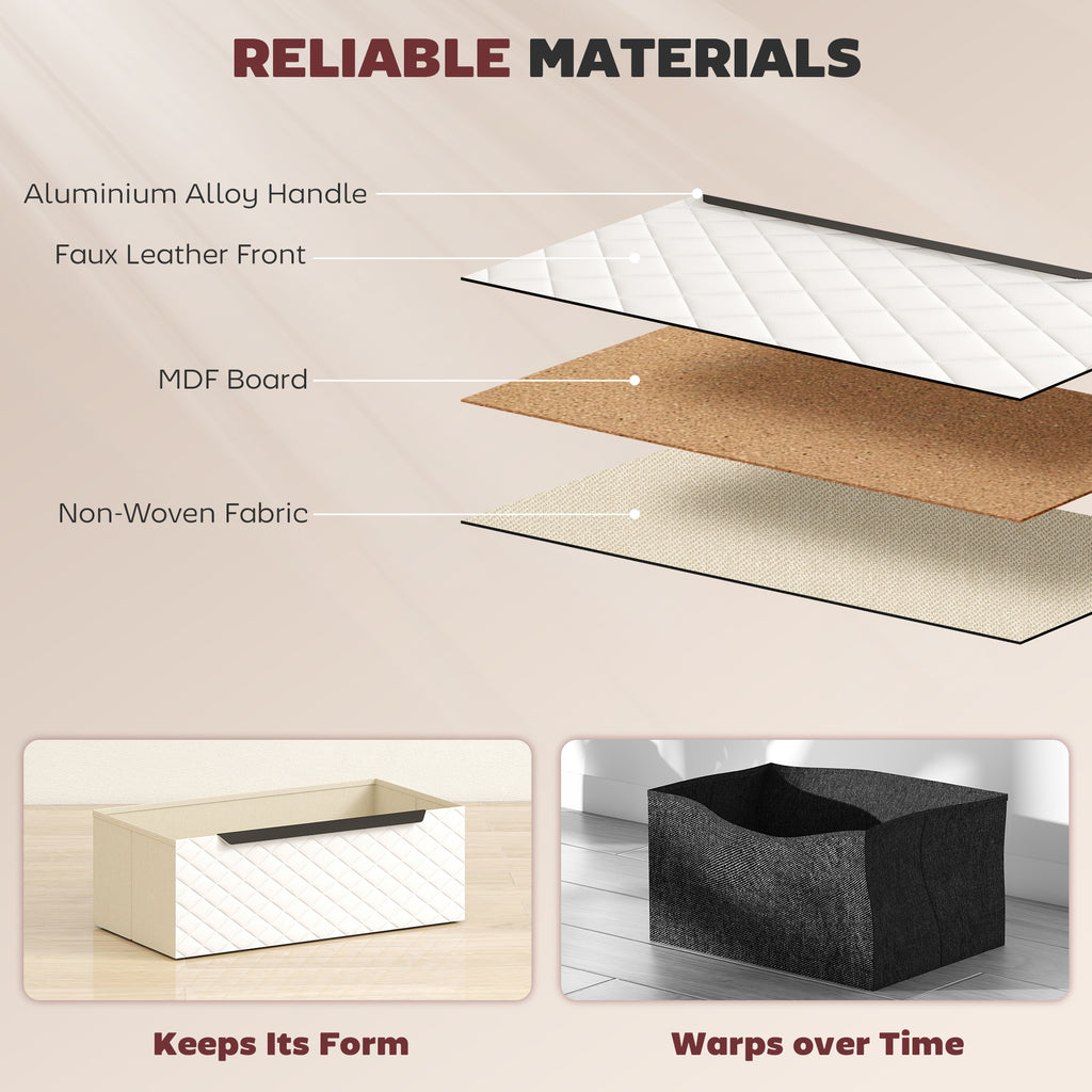 - Diamond-stitched faux leather fronts with wood-effect frame for stylish home decor