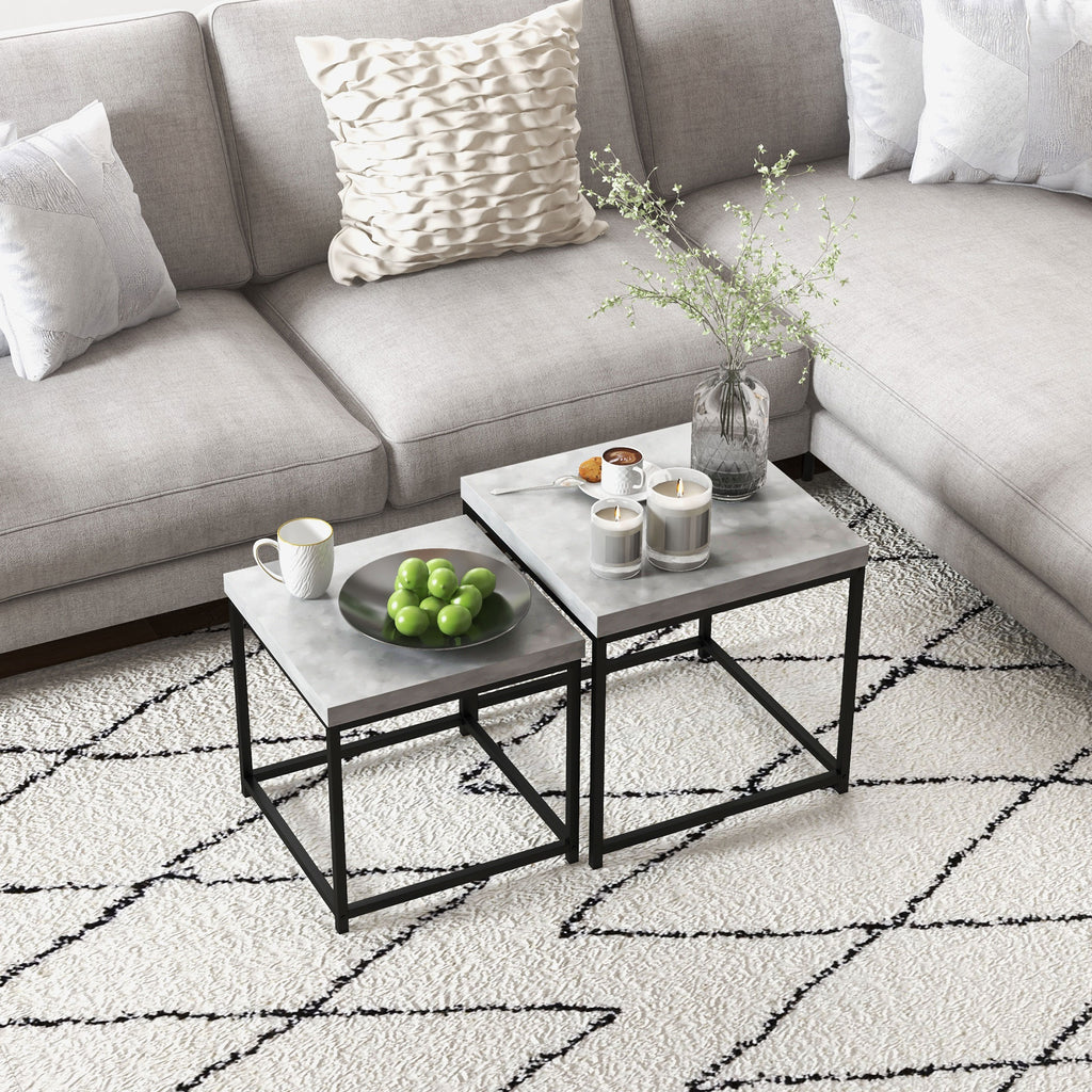 Nesting tables are done uniquely way, thanks to the coffee table set from HOMCOM adding character to your space. The coffee tables can be separated or independently used in the living room, bedroom, office. Painted steel frames and the 3.5 cm thick table top are strong structure design, which is smooth and easy to clean, can supporting the table tops properly. Let these two stylish and functional living room tables accompany you to spend every leisure moment.