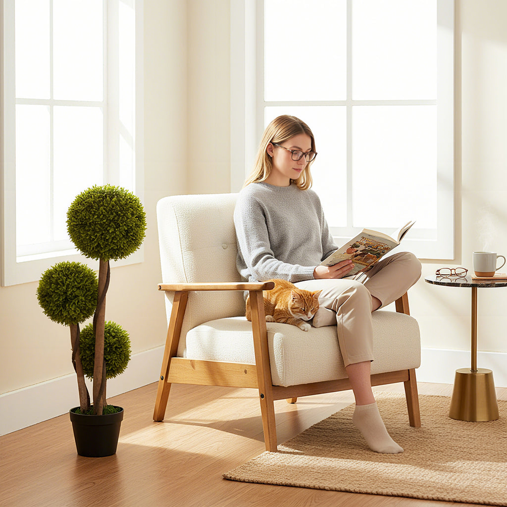 Fake plants are great for those who want something vibrant without the constant upkeep, all year round. This set of two HOMCOM artificial boxwood trees is exactly that. Each features three bush balls for a cool look. Made from plastic in a vibrant green with a natural texture for a realistic effect. They come with cement-filled pots to keep them steady, topped with faux grass. Use indoors or outdoors — the choice is yours.