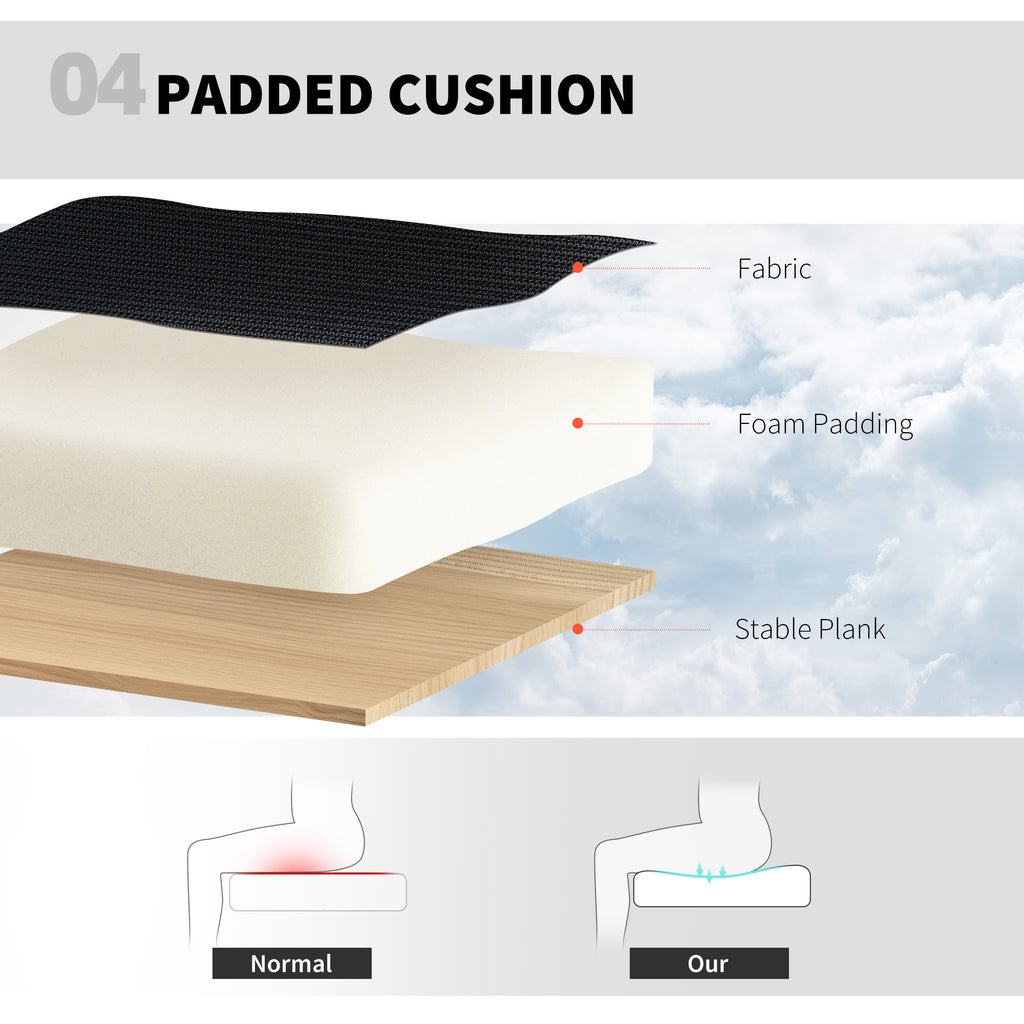 For higher desks and work surfaces, go for this HOMCOM draughtsman chair. Set the seat between 53-78 cm - it's easy to set it to the position you want, so you work at the level which doesn't strain you. The lumbar support moves forwards/backwards and up/down. The seat is padded with high-density foam for comfort which always retains its shape. Complete with flip-up armrests and bottom metal bar to rest your legs and feet.