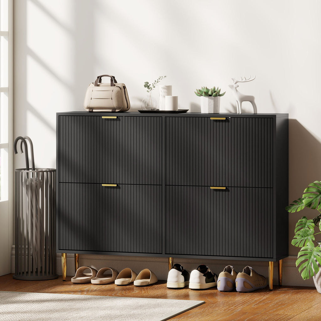 - Four flip drawers store 10-20 shoe pairs, maximum size UK 9.5