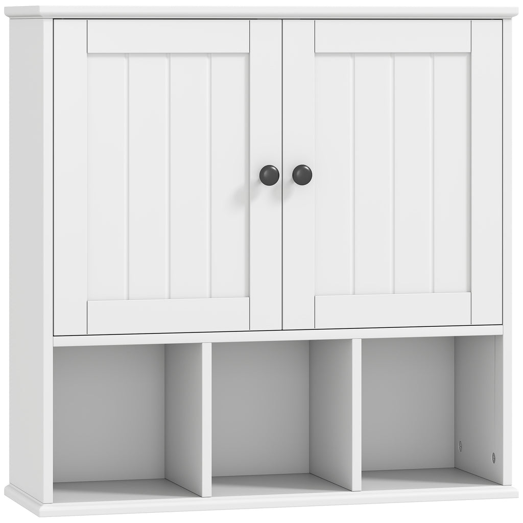 Discover the charm of farmhouse elegance with the HOMCOM bathroom wall cabinet. Its beadboard doors and classic detailing add a timeless touch, while the flexible storage options, including a double-door cabinet, three open compartments and an adjustable shelf, keep your essentials tidy and accessible. Mount the storage cupboard on the wall to save space and bring structured grace to your bathroom.