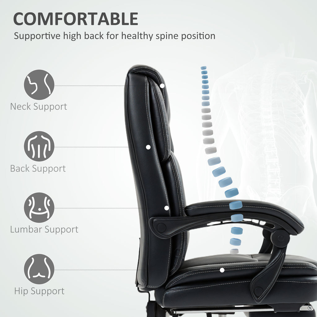 Long work days need a comfortable place to sit - so you can focus fully. This HOMCOM executive office chair does exactly that. Filled with plush, cloud-soft cushion, it is spring filled for comfort which retains shape - a seat you can use every day. It's wrapped in smooth, water-resistant faux leather upholstery: a sleek and easy-to-maintain piece.