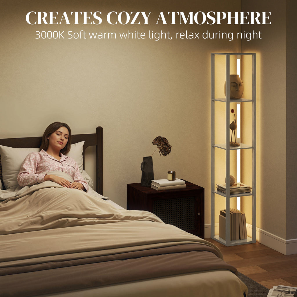Light up your space with the HOMCOM floor lamp with shelves! This shelf floor lamp features a warm white LED lamp, adjustable across three brightness levels, ensuring the optimum ambiance for any occasion. With four tiers of shelving, it stylishly maximizes your storage space, great for any living room. Illuminate and organise effortlessly with this sleek addition to your home decor.