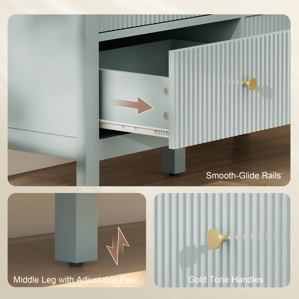 - Fluted drawer fronts and Gold Tone handles bring refined modern elegance to any room