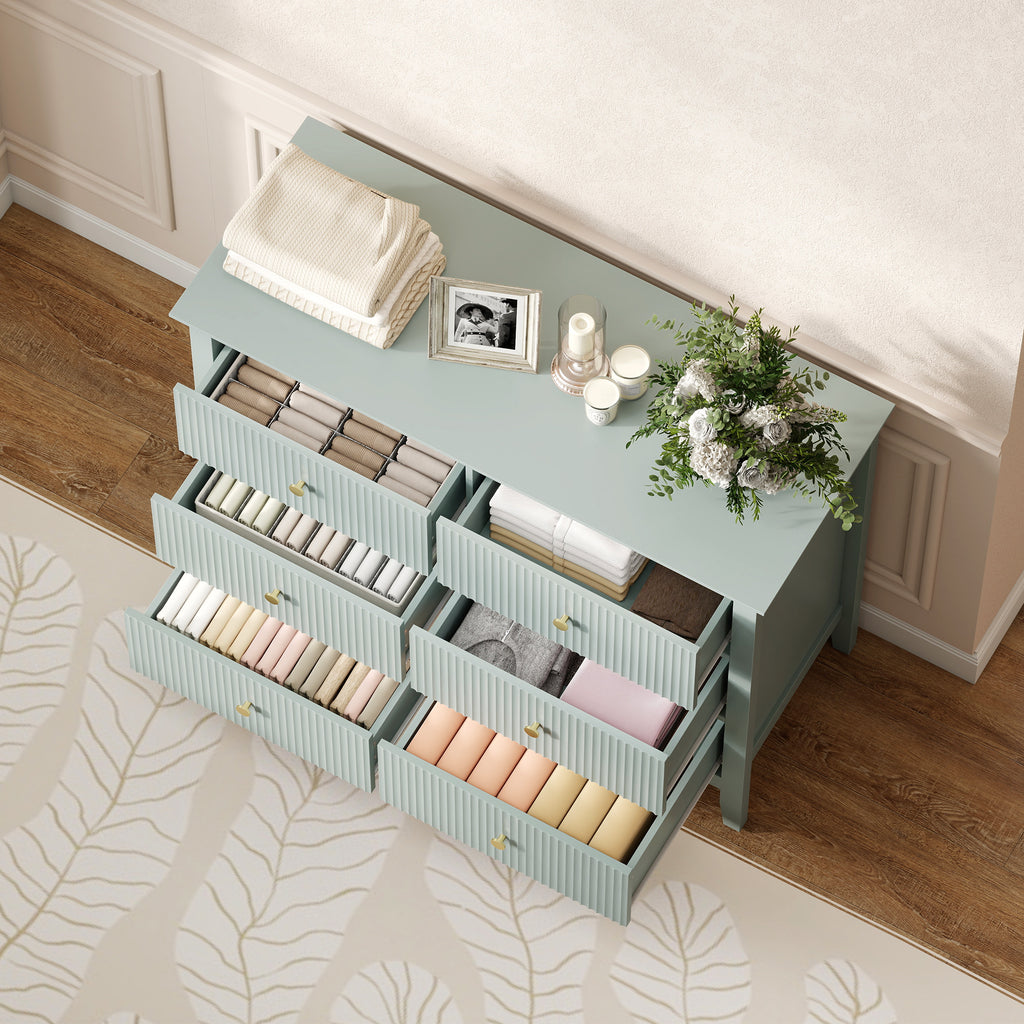 When clutter steals the calm from your bedroom, the HOMCOM chest of drawers restores order and elegance in one move. Six drawers and a spacious top create a haven for clothes and essentials, while fluted fronts and Gold Tone handles bring modern charm. Built with a reinforced frame, adjustable feet and anti-tipping safety, this dresser keeps your home beautifully balanced, organised and effortlessly stylish.