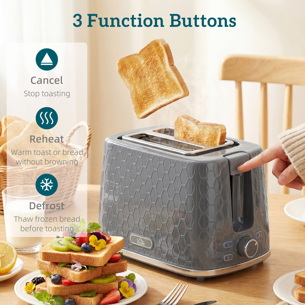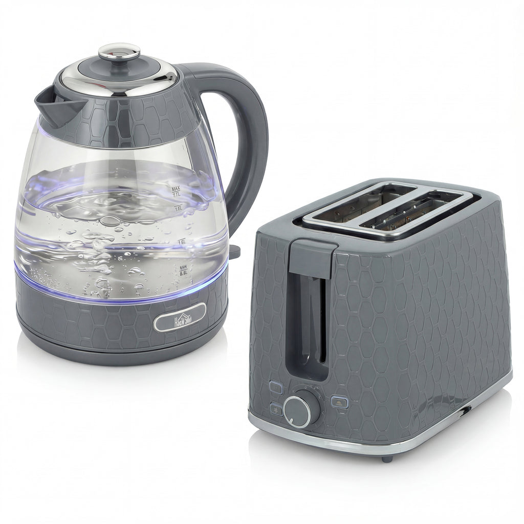 Start your mornings right with HOMCOM's 2-slice toaster and 1.7L fast-boil kettle duo! Prepare toast and hot drinks together, making breakfast effortless for the family. The kettle boils water in 170 seconds, with a clear gauge, blue light, plus safety features like auto shut-off, boil-dryand overheat protection. Meanwhile, the toaster's seven browning levels cater to every taste, ensuring golden, crispy perfection for busy mornings. Stylish, safeand easy to use!