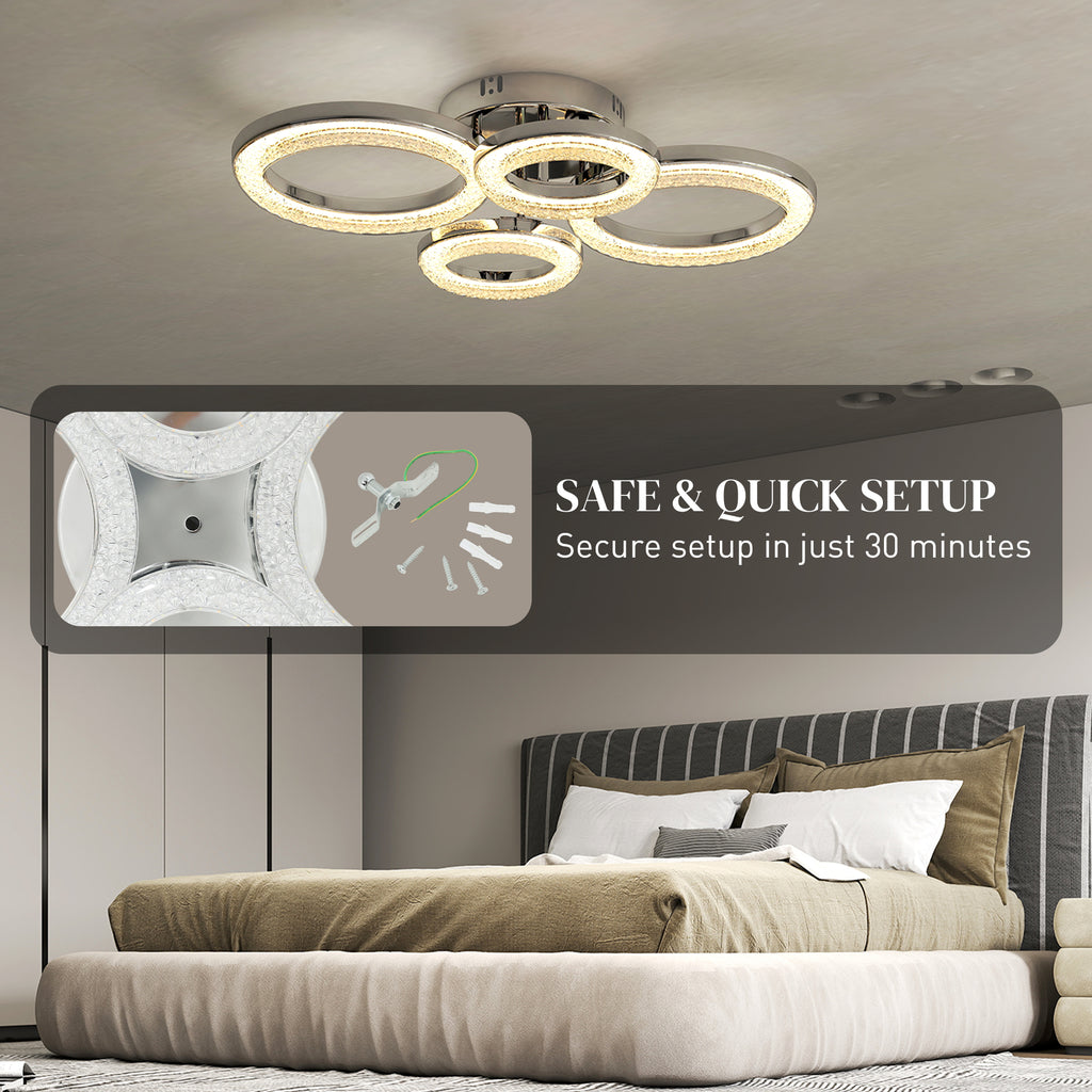 Tired of your living room feeling dull and the lighting never quite right for the occasion? A single, harsh light can make gatherings feel unwelcoming and your decor look flat. This HOMCOM LED ceiling light transforms your space. Effortlessly switch moods with your wall switch, from a warm glow to bright light. Its stunning four-ring design becomes an artistic centrepiece, bathing your room in brilliant, inviting illumination and reflecting your modern taste.