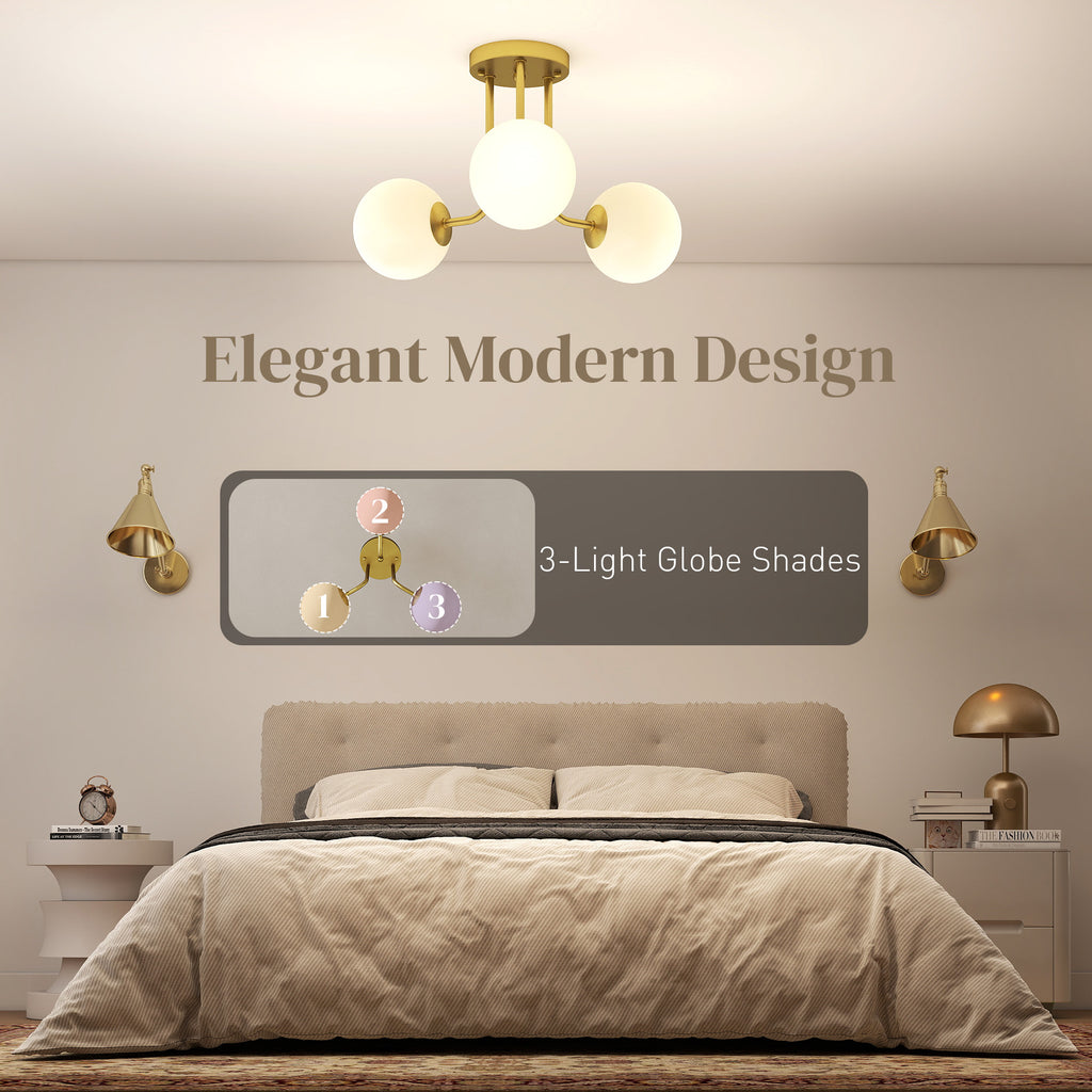 - Elegant gold finish and globe shades instantly upgrade your room's aesthetic