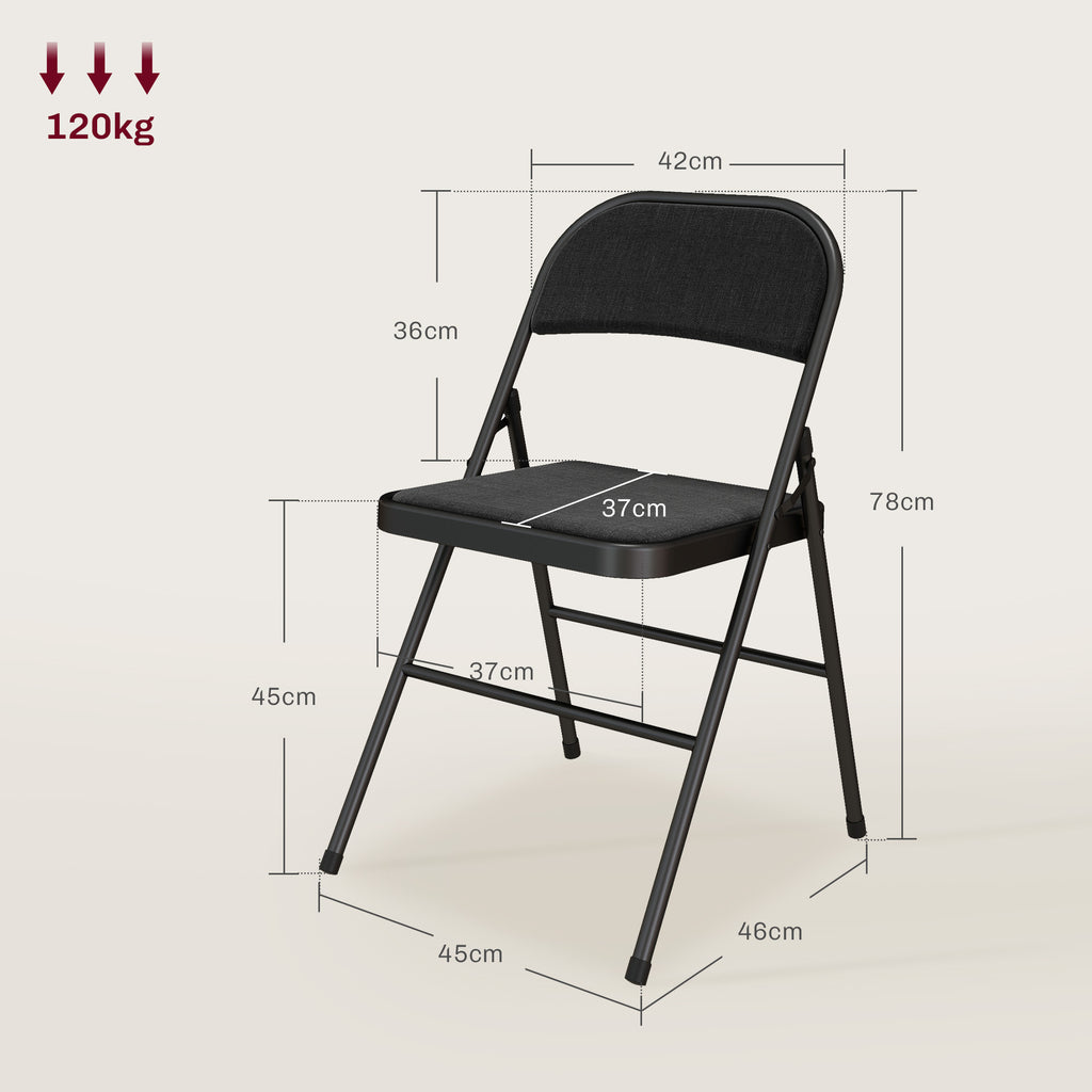 Fold down, fold up. This set of four folding chairs from HOMCOM provide instant seating for whatever the task is. Steel frames ensure a strong core, so you'll be supported with every use. Padding on the seats keep you comfortable, making them suitable for a variety of tasks. The foldable design is great for smaller spots - simply take out and use whenever needed.