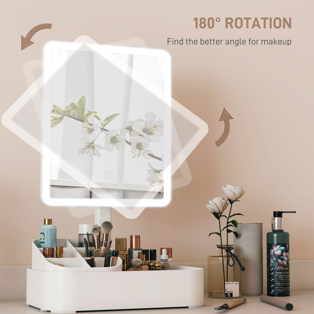 Light up your beauty routine with the HOMCOM Vanity Makeup Mirror! Toggle between warm (3500K) and cool (7000K) lighting with a simple touch and long-press to adjust brightness. Its 180-degree rotation offers a great angle for any look. Plus, keep your beauty essentials organised with the built-in storage box. This makeup mirror is an excellent blend of function and flair for your dressing table.