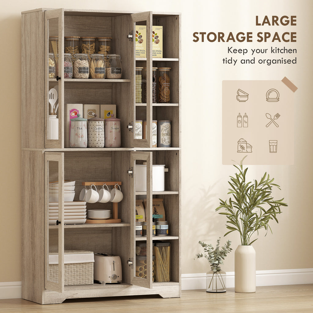 All kitchenware essentials in a beautiful place: this HOMCOM kitchen cupboard. A multi-storage design - with two cupboards and six side shelves. Four of the side shelves are adjustable to three positions - cater for smaller and larger items as needed. Finished with soft-close hinges to keep your space quiet and peaceful.