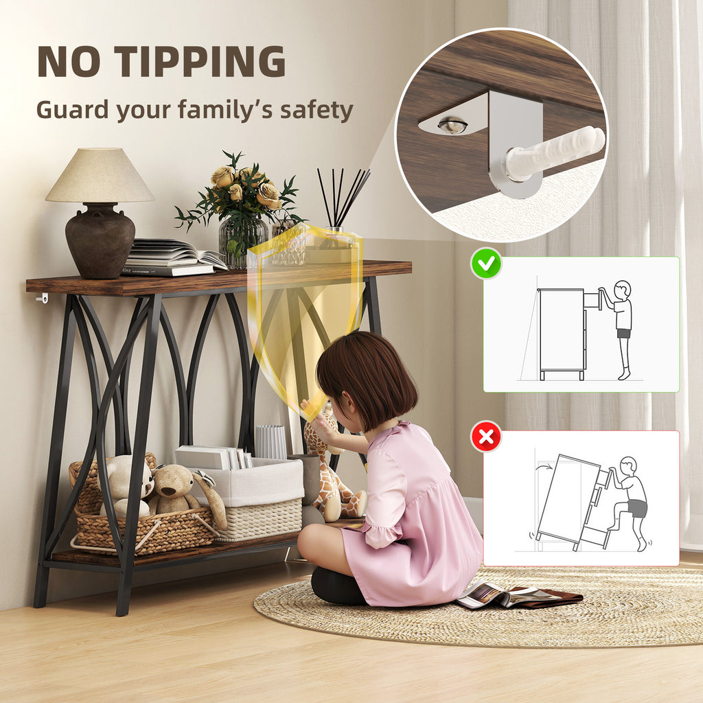 Elevate your living space with the HOMCOM Console Table, merging industrial flair and practicality. Its rustic brown finish and elegant curved frame enhance any decor, offering a spacious two-tier storage for a tidy welcome. Crafted for stability and safety with an anti-tipping kit, this versatile console table fits beautifully wherever you place it.
