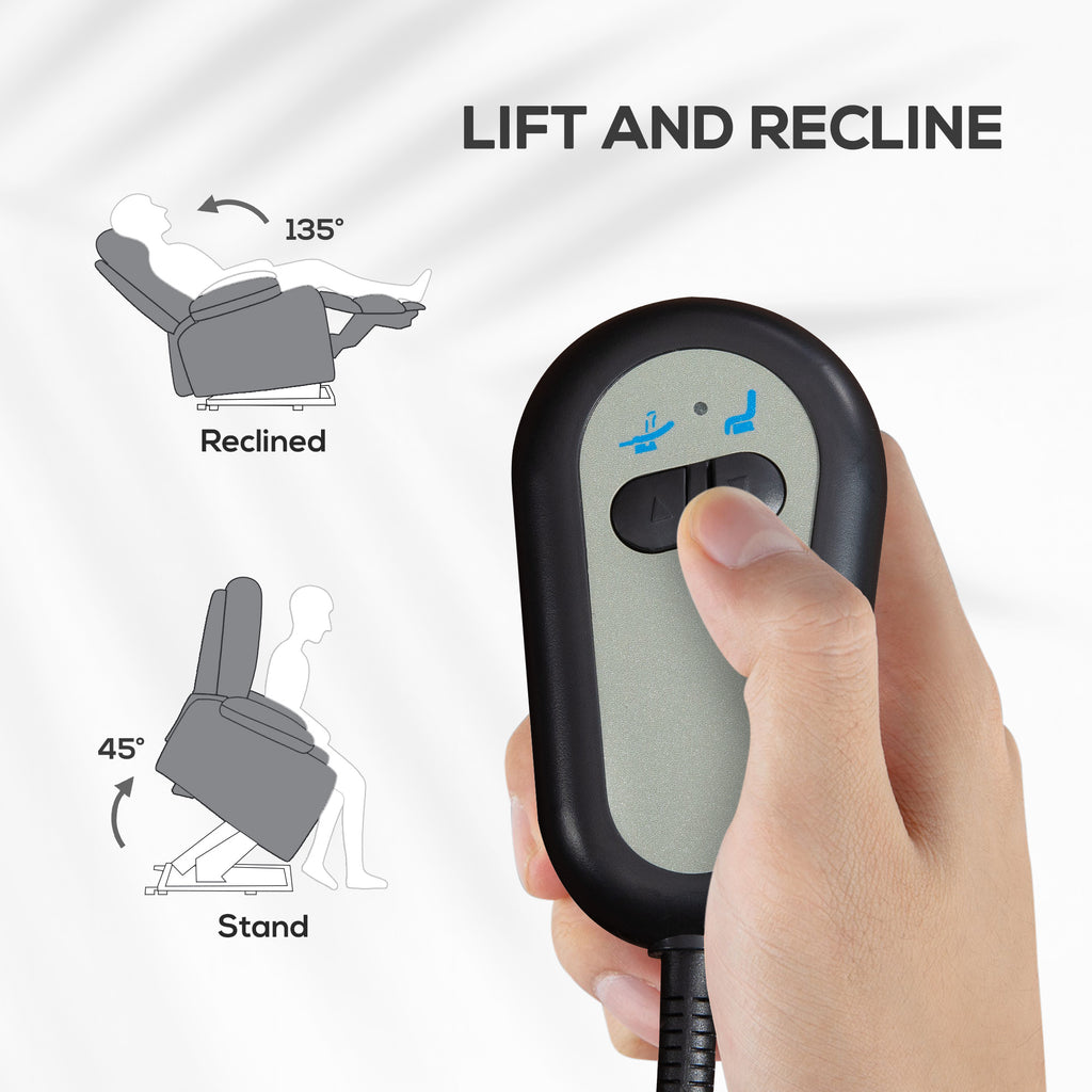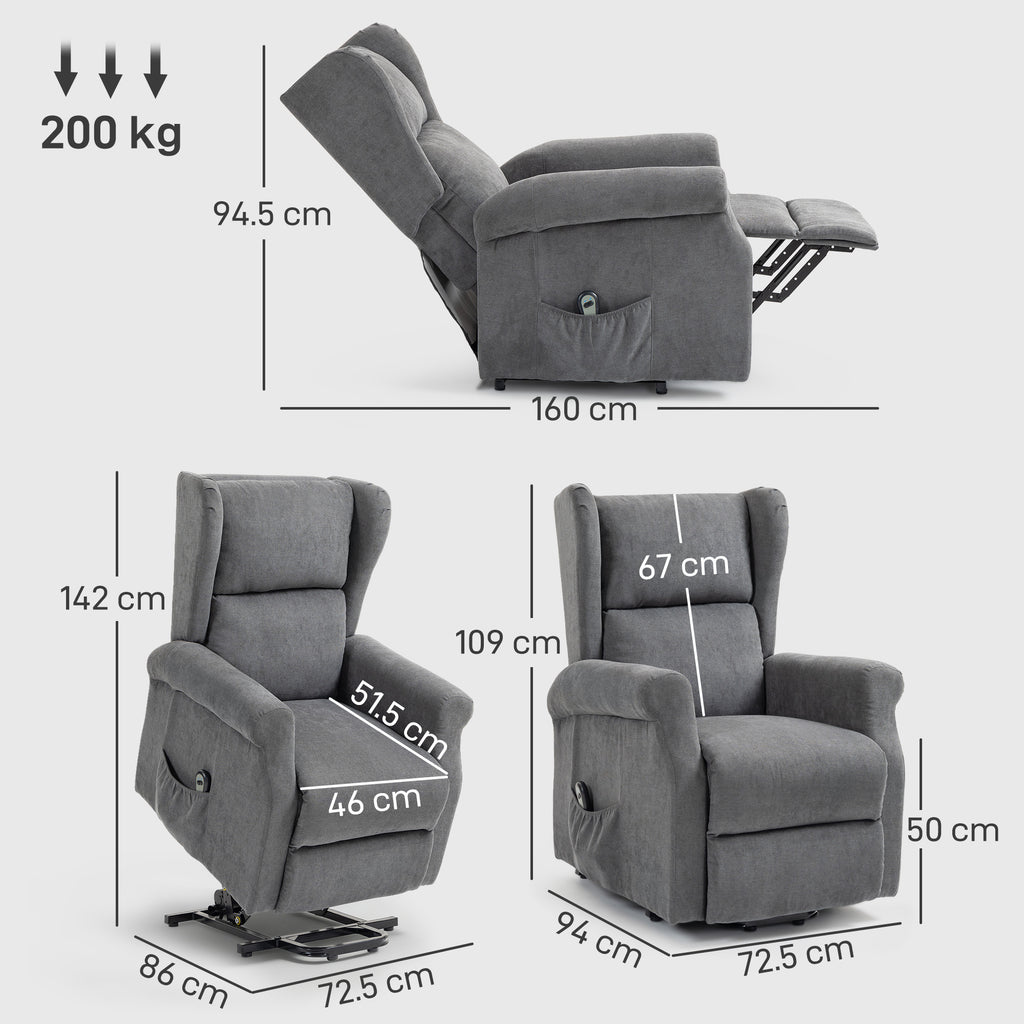 Bring assistance into your life whilst keeping your independence: look to this HOMCOM lift-up armchair. Steel forms the frame for a strong structure which supports up to 200 kg. Thickly padded all over to keep you comfortable, it features a 135° reclining back and footrest: control them with the remote to set chair in a position you want. The gentle lifting angle makes it easy to sit down and get out of the chair. Finished with smooth linen-look upholstery.
