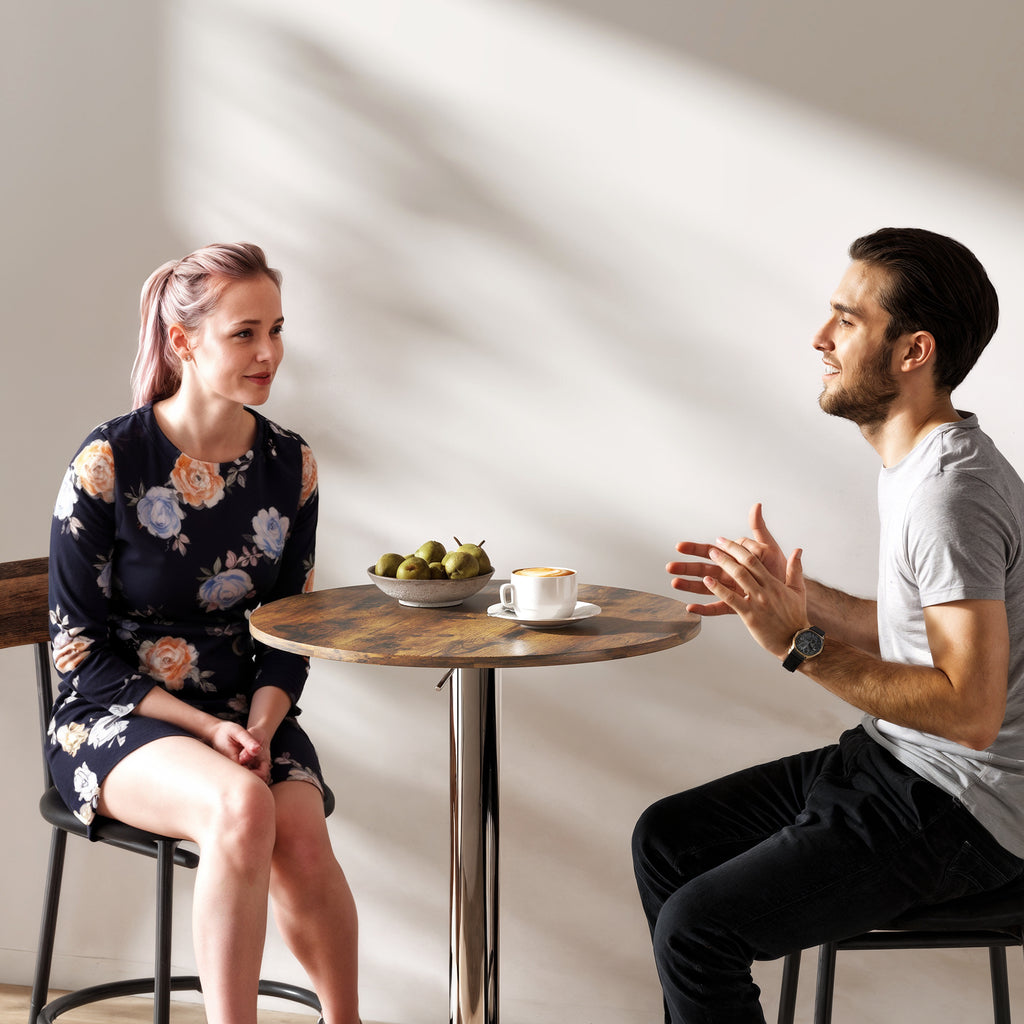 - Rustic brown top and chrome-plated base elevate your home's decor style